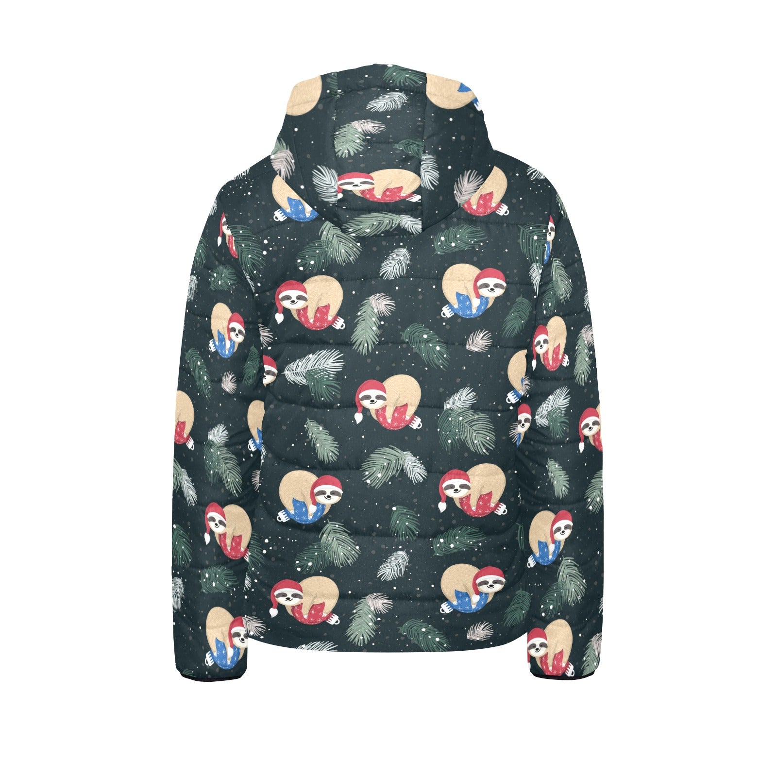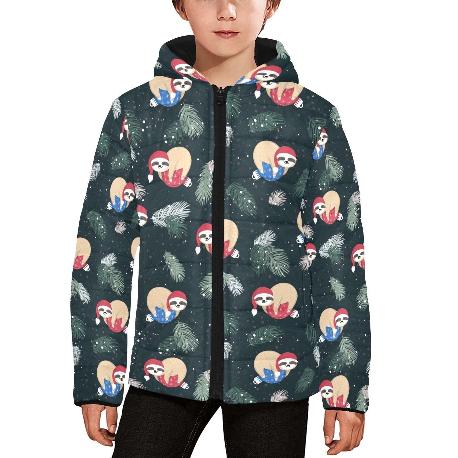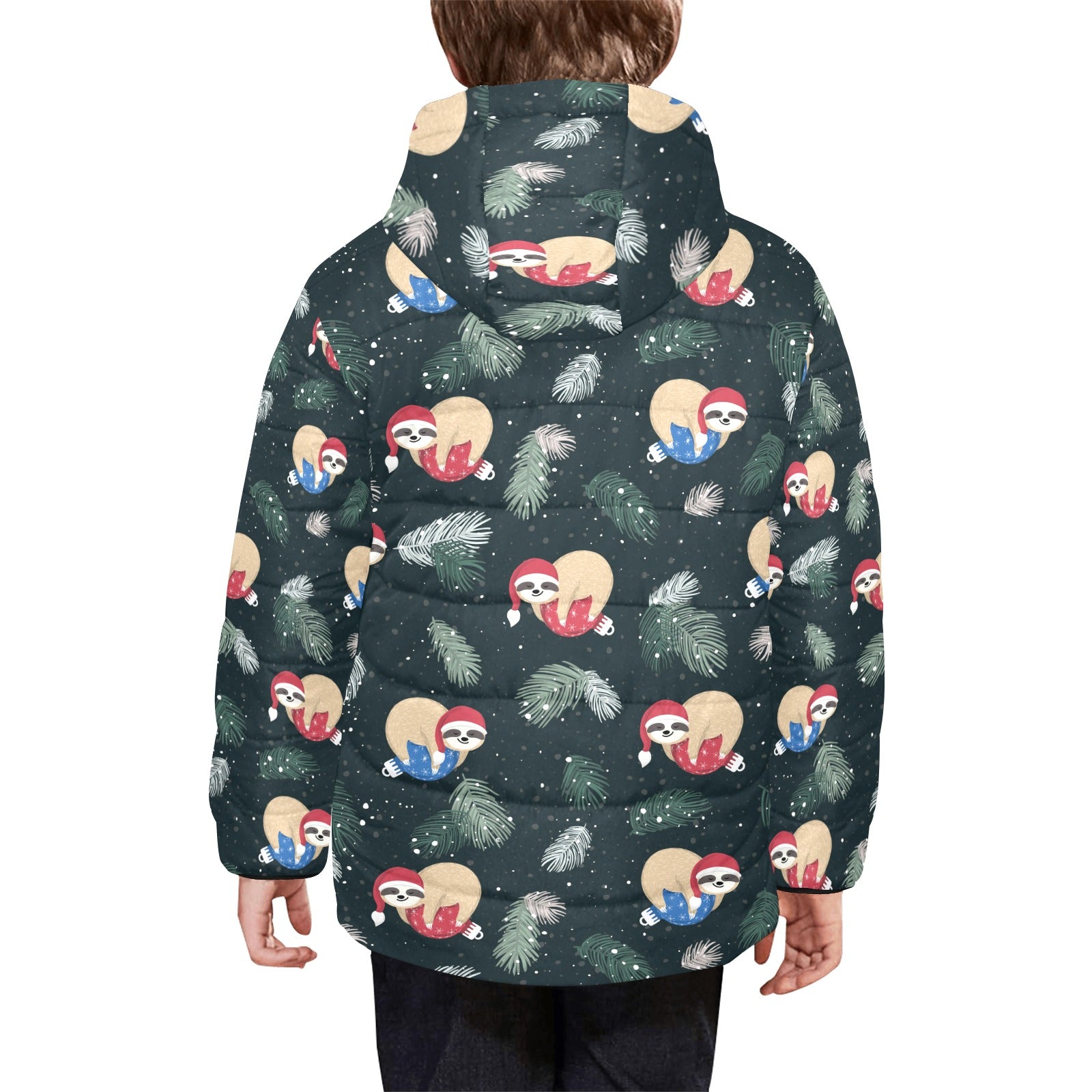Cute sloths sleeping christmas ball santa hat patt Kids' Boys' Girls' Padded Hooded Jacket