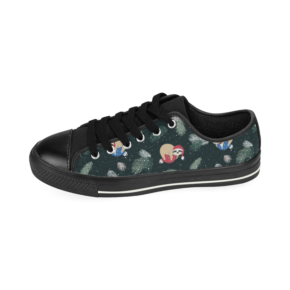 Cute sloths sleeping christmas ball santa hat patt Men's Low Top Canvas Shoes Black