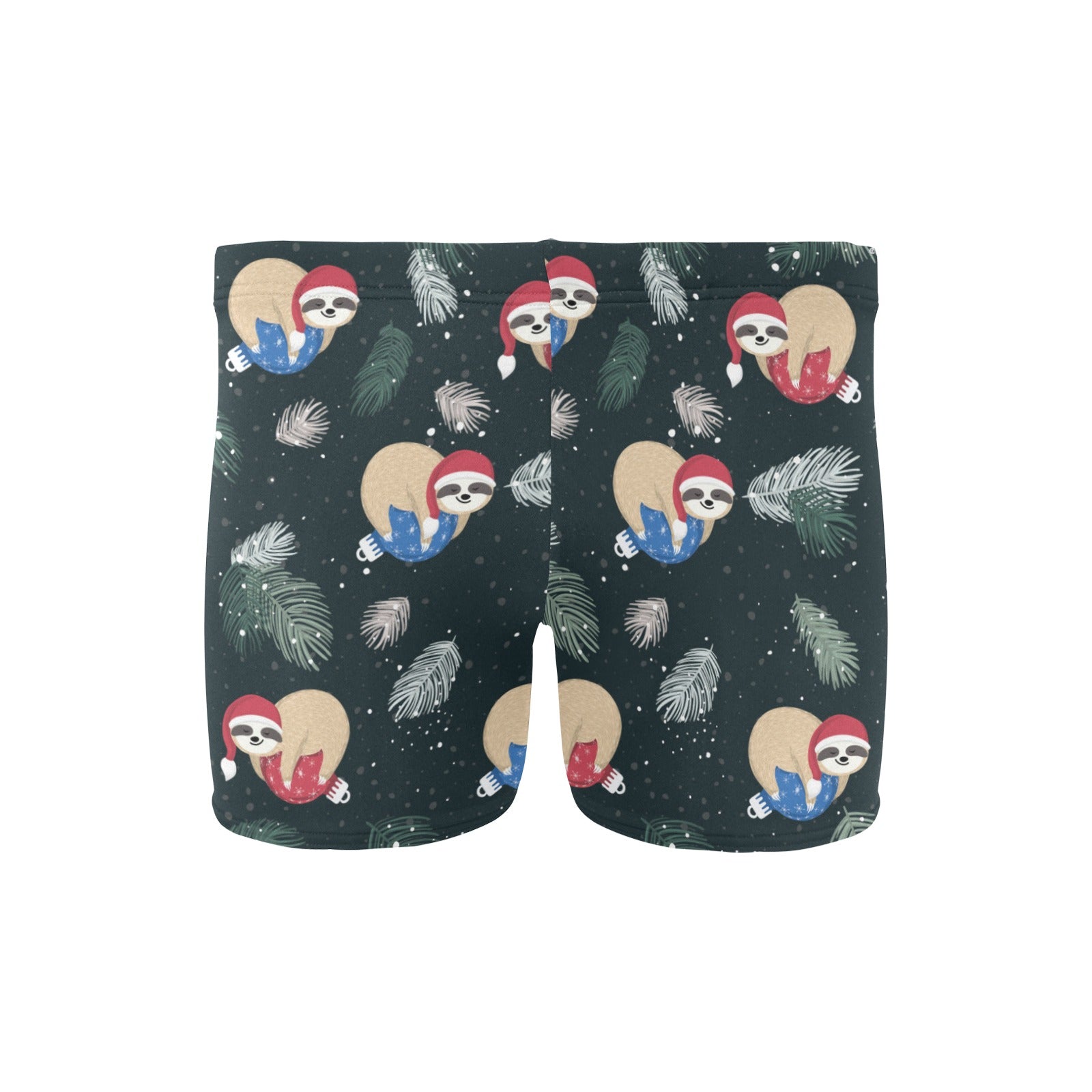 Cute sloths sleeping christmas ball santa hat patt Men's Swimming Trunks