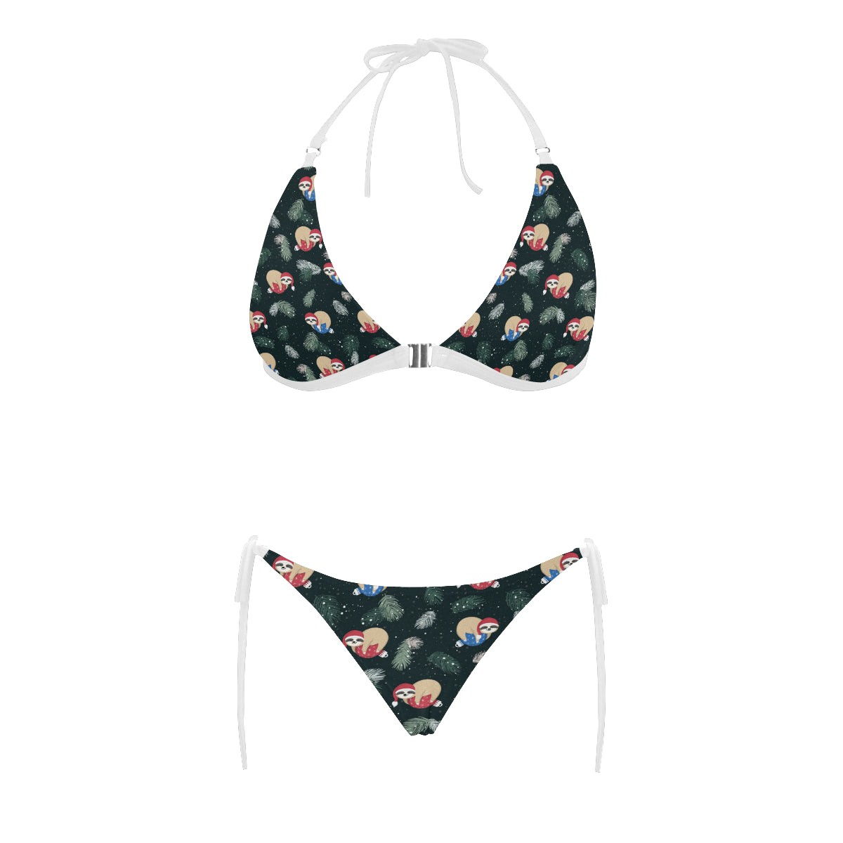 Cute sloths sleeping christmas ball santa hat patt Sexy Bikinis Two-Piece Swimsuits are uniqued design and limited item. It made to order, hand printed, and sewn with love in our factory.