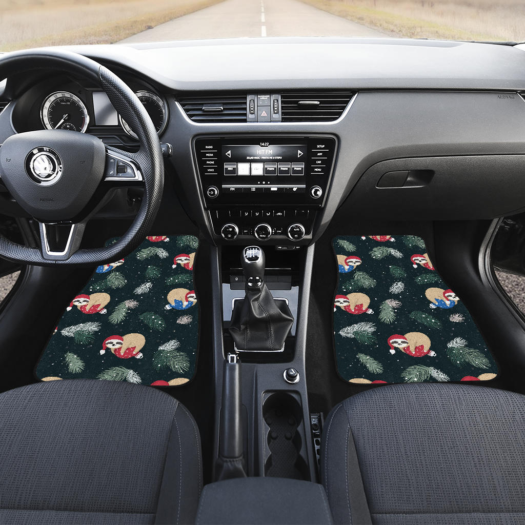 Cute sloths sleeping christmas ball santa hat pattern Front and Back Car Mats are uniqued design and limited item. It made to order, hand printed, and sewn with love in our factory.