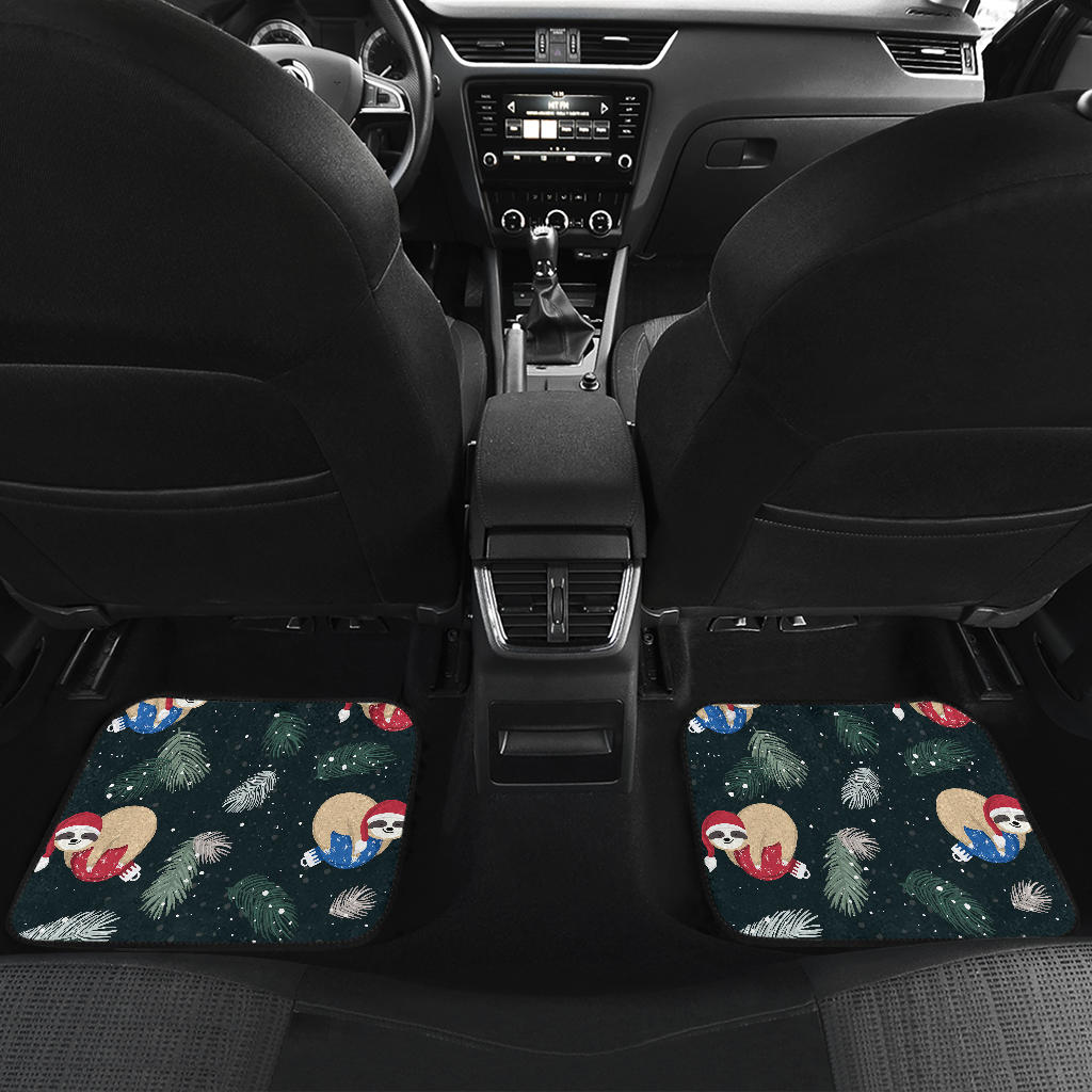 Cute Sloths Sleeping Christmas Ball Santa Hat Pattern Front And Back Car Mats