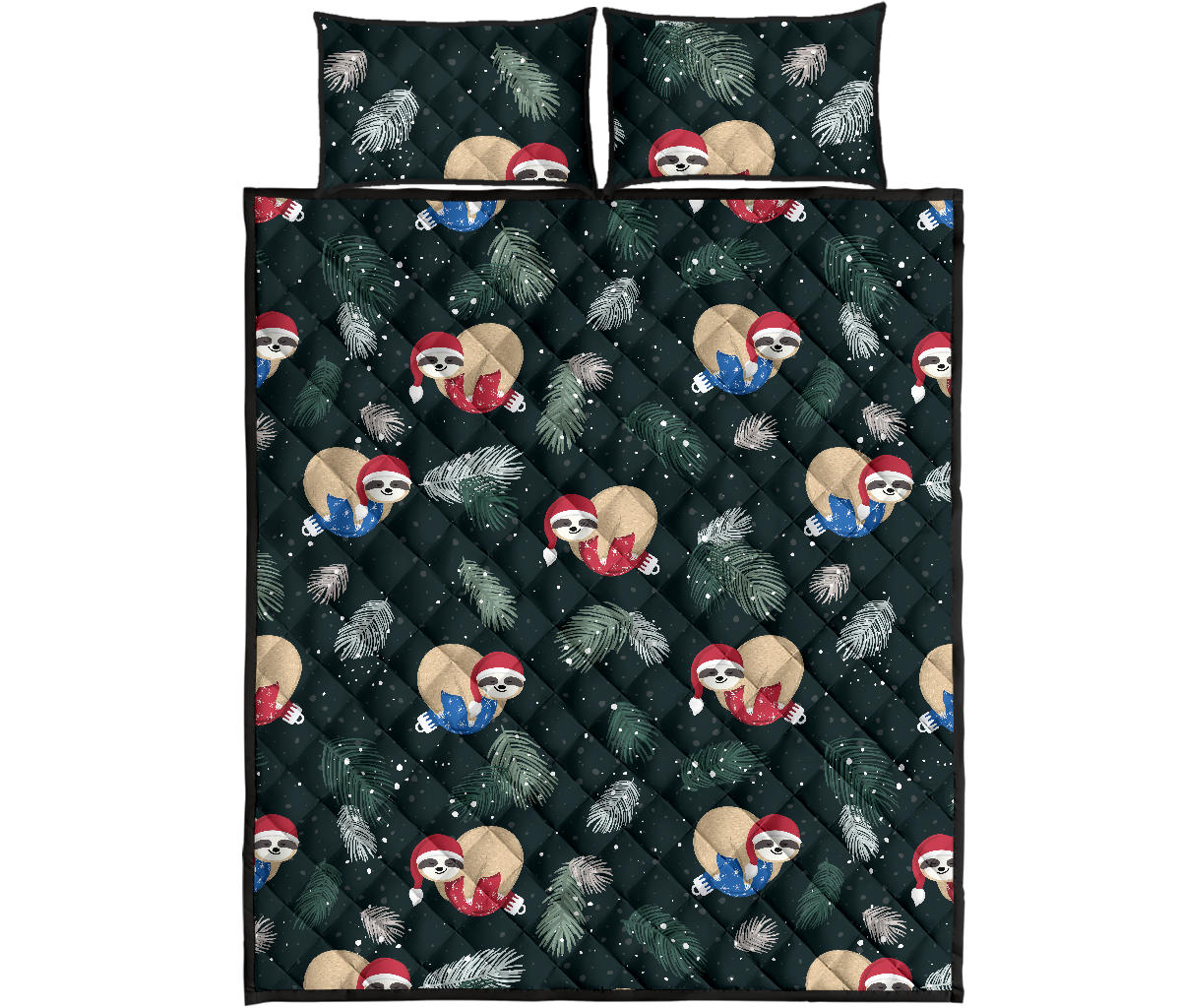 Cute sloths sleeping christmas ball santa hat pattern Quilt Bed Set