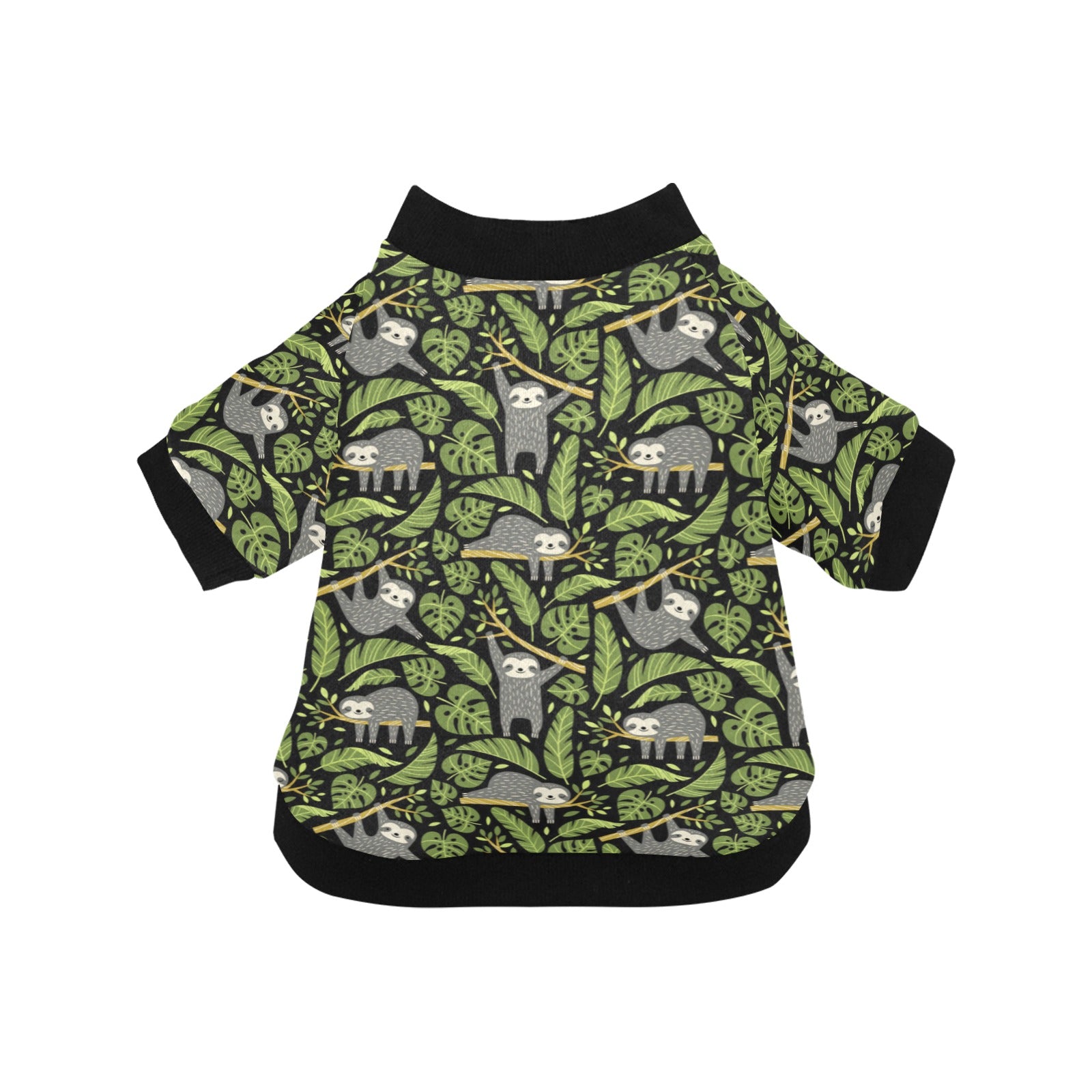 Cute sloths tropical palm leaves black background All Over Print Pet Dog Round Neck Fuzzy Shirt
