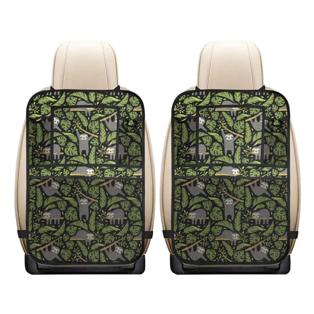 Cute sloths tropical palm leaves black background Car Seat Back Organizer