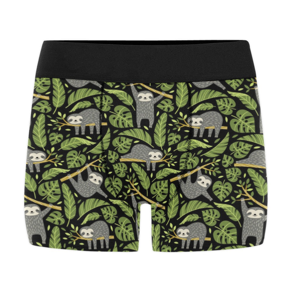 Cute sloths tropical palm leaves black background Men's All Over Print Boxer Briefs Men's Underwear