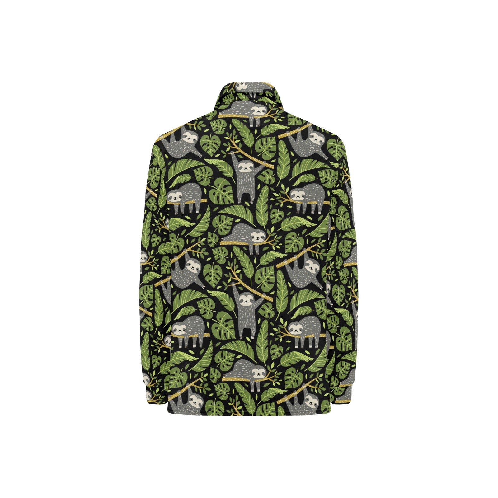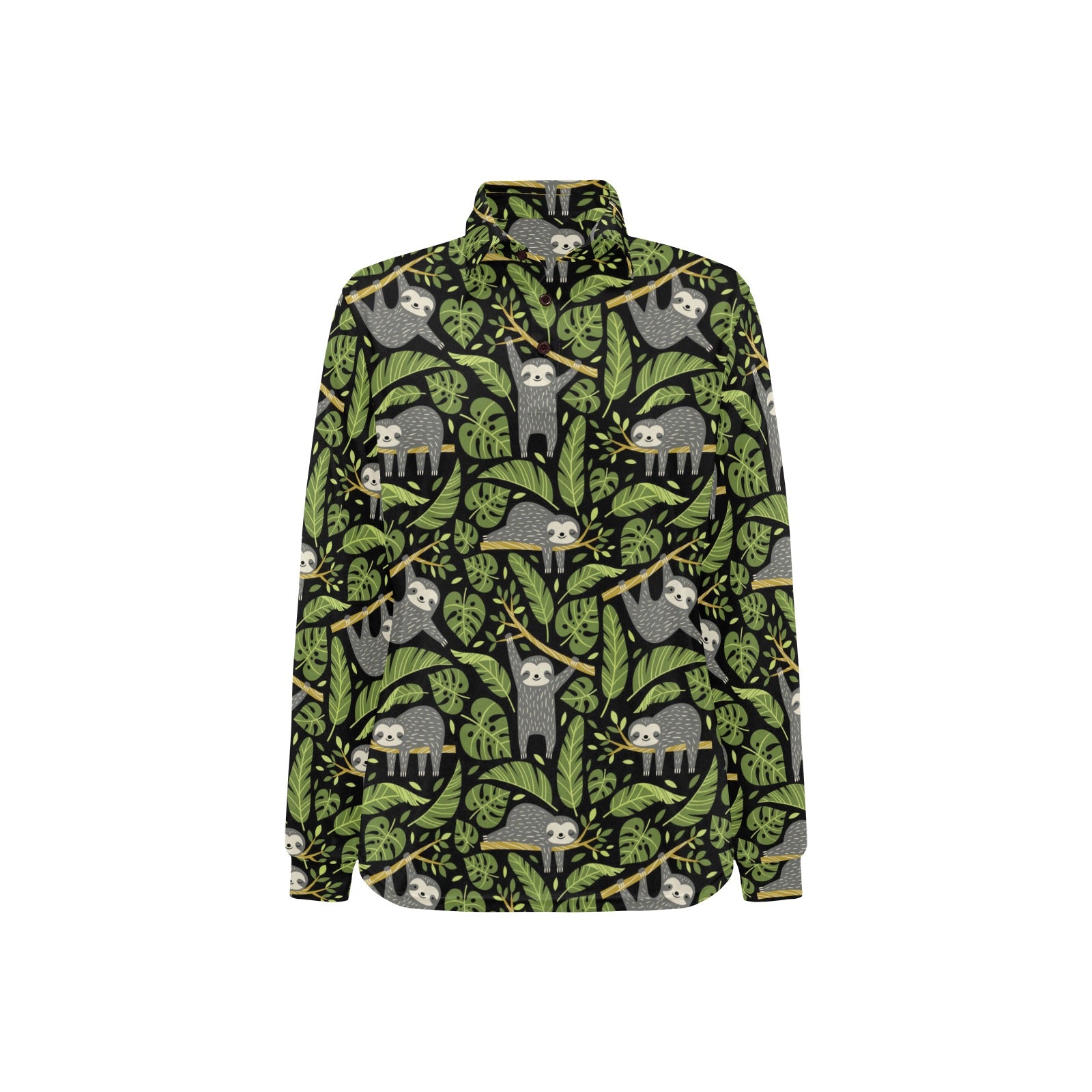 Cute sloths tropical palm leaves black background Women's Long Sleeve Polo Shirt