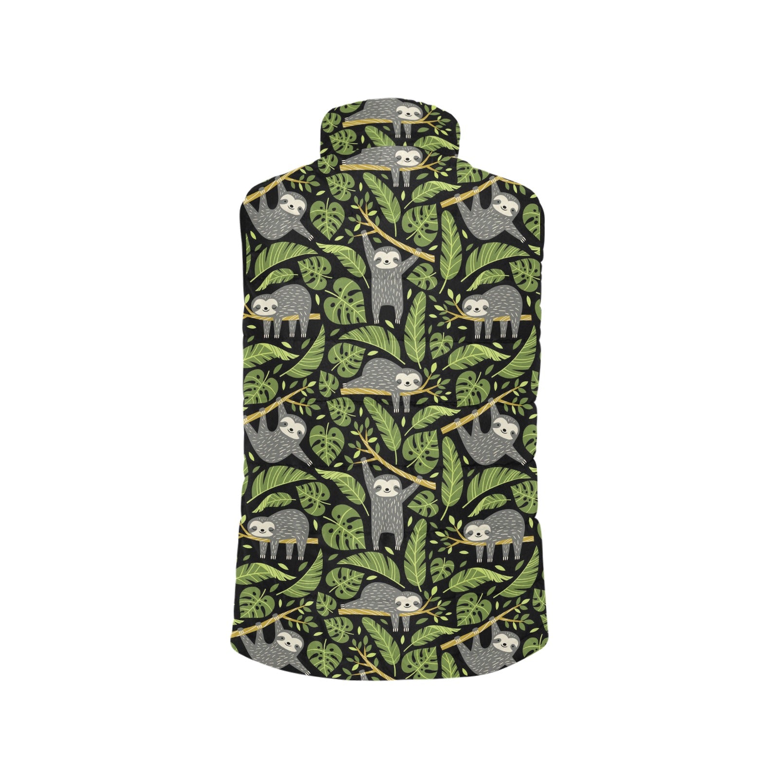 Cute sloths tropical palm leaves black background Women's Padded Vest