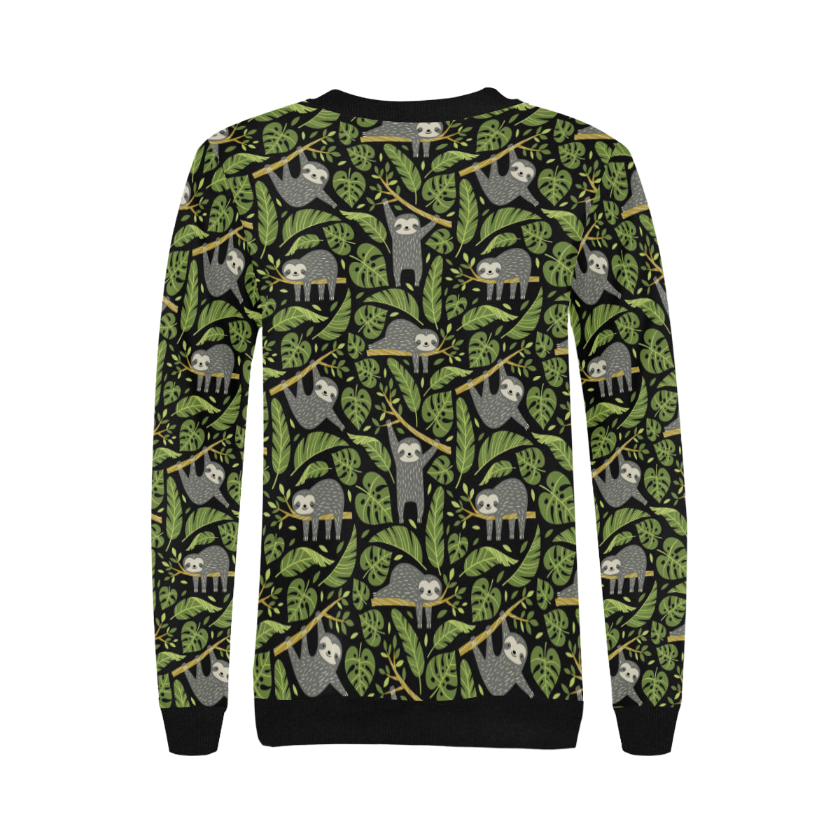 Cute sloths tropical palm leaves black background Women's Crew Neck Sweatshirt is a uniqued design and limited item. It made to order, hand printed, and sewn with love in our factory.