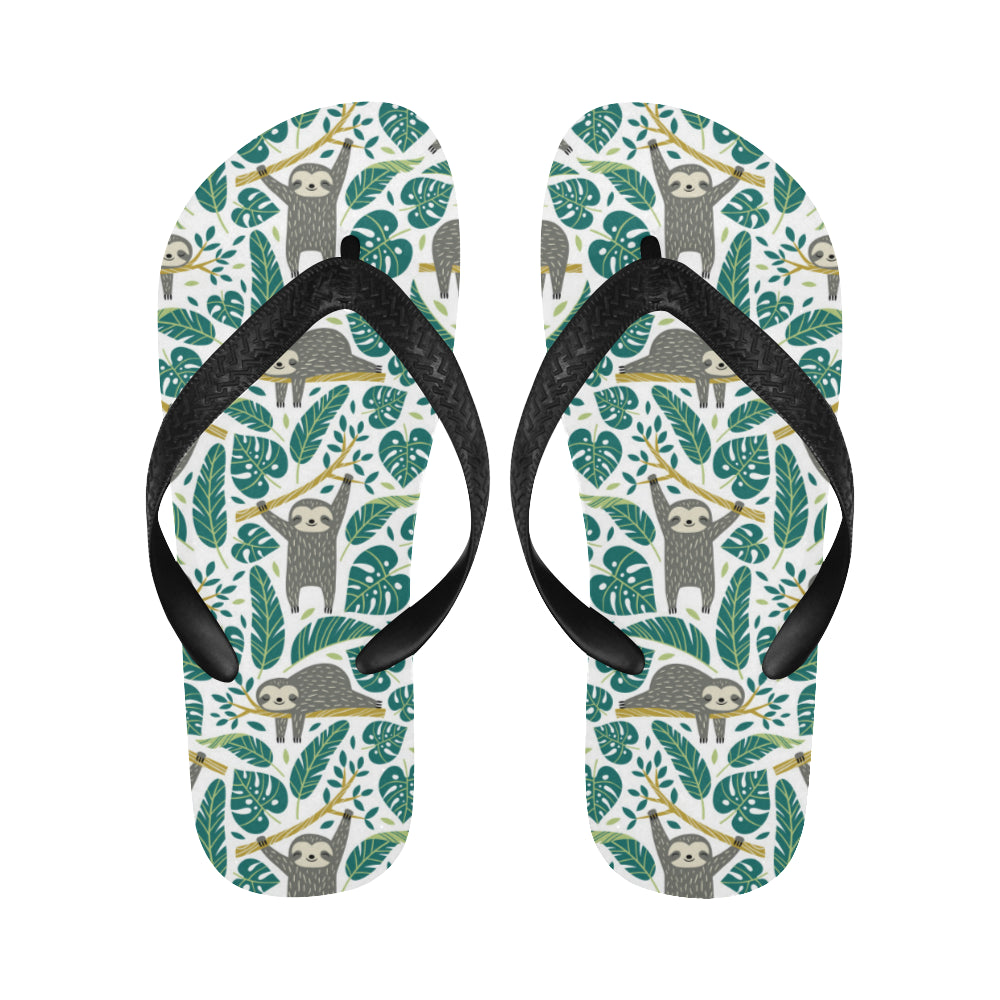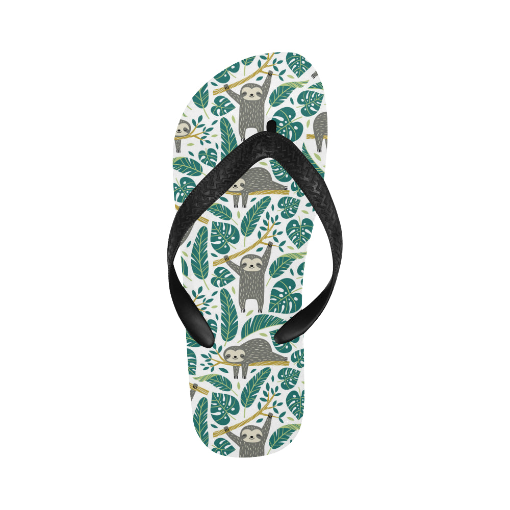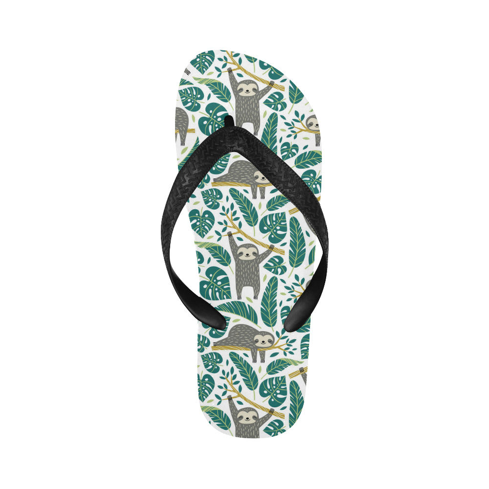 Cute sloths tropical palm leaves white background Unisex Flip Flops is a uniqued design and limited item. It made to order, hand printed, and sewn with love in our factory.