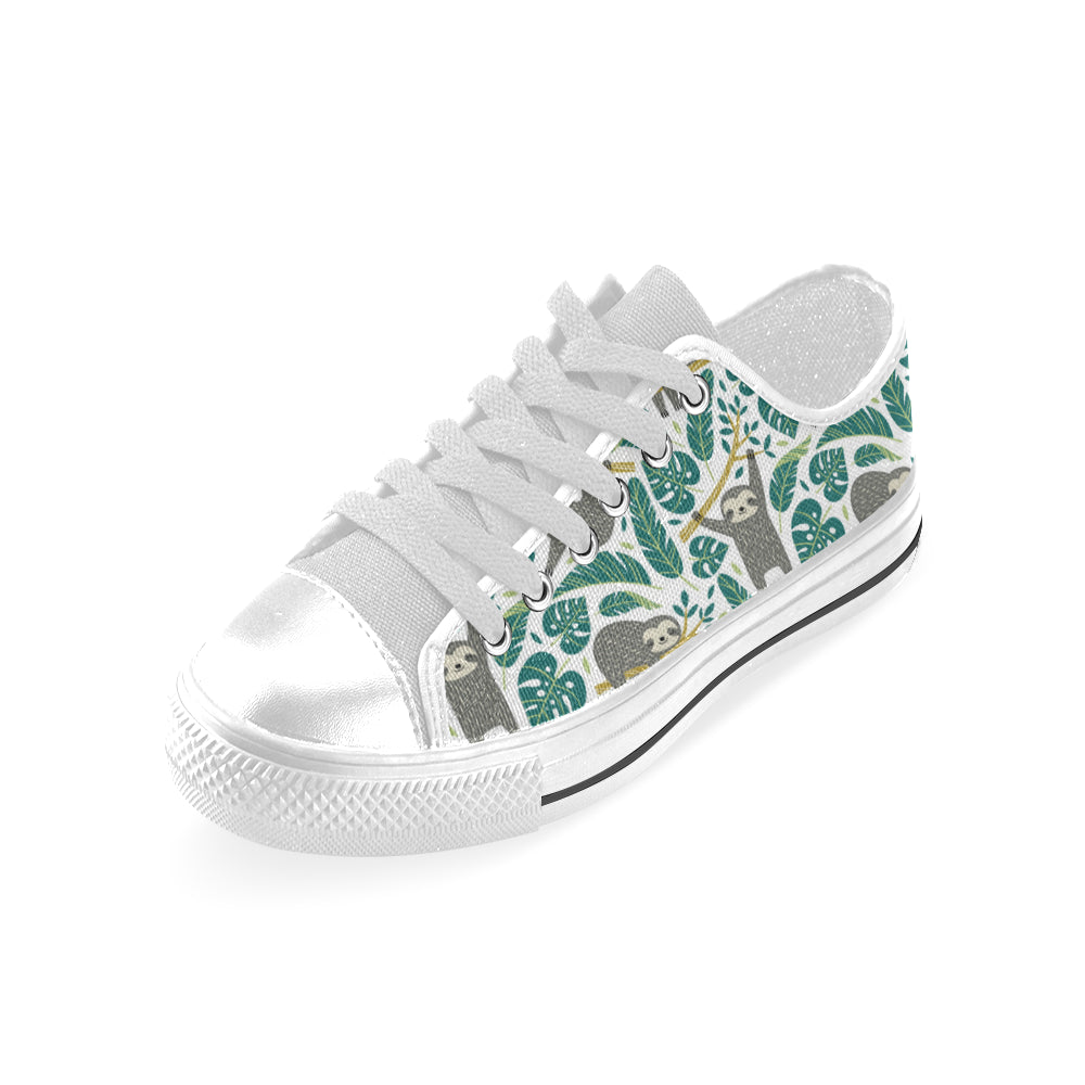 Cute sloths tropical palm leaves white background Men's Low Top Shoes White