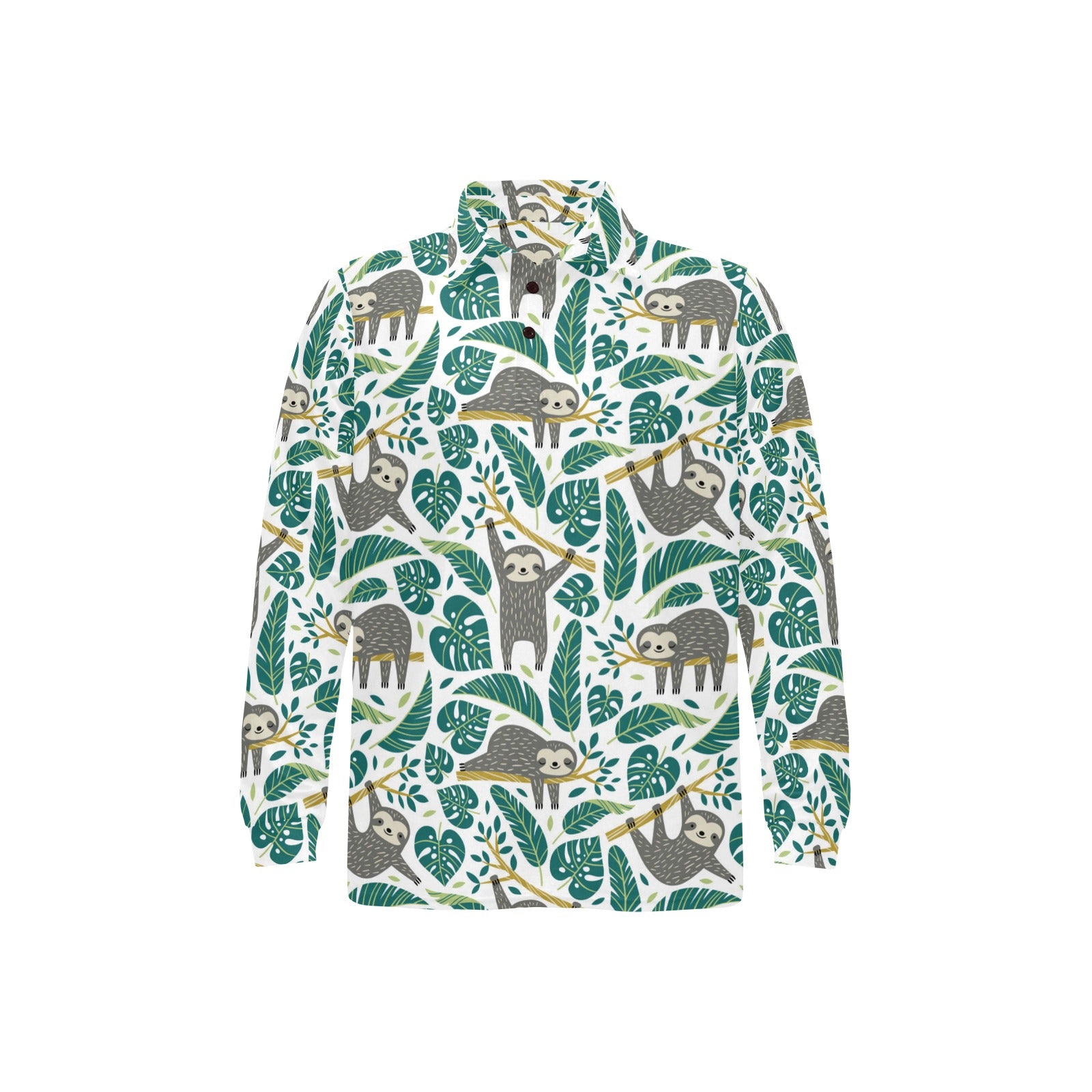 Cute sloths tropical palm leaves white background Men's Long Sleeve Polo Shirt