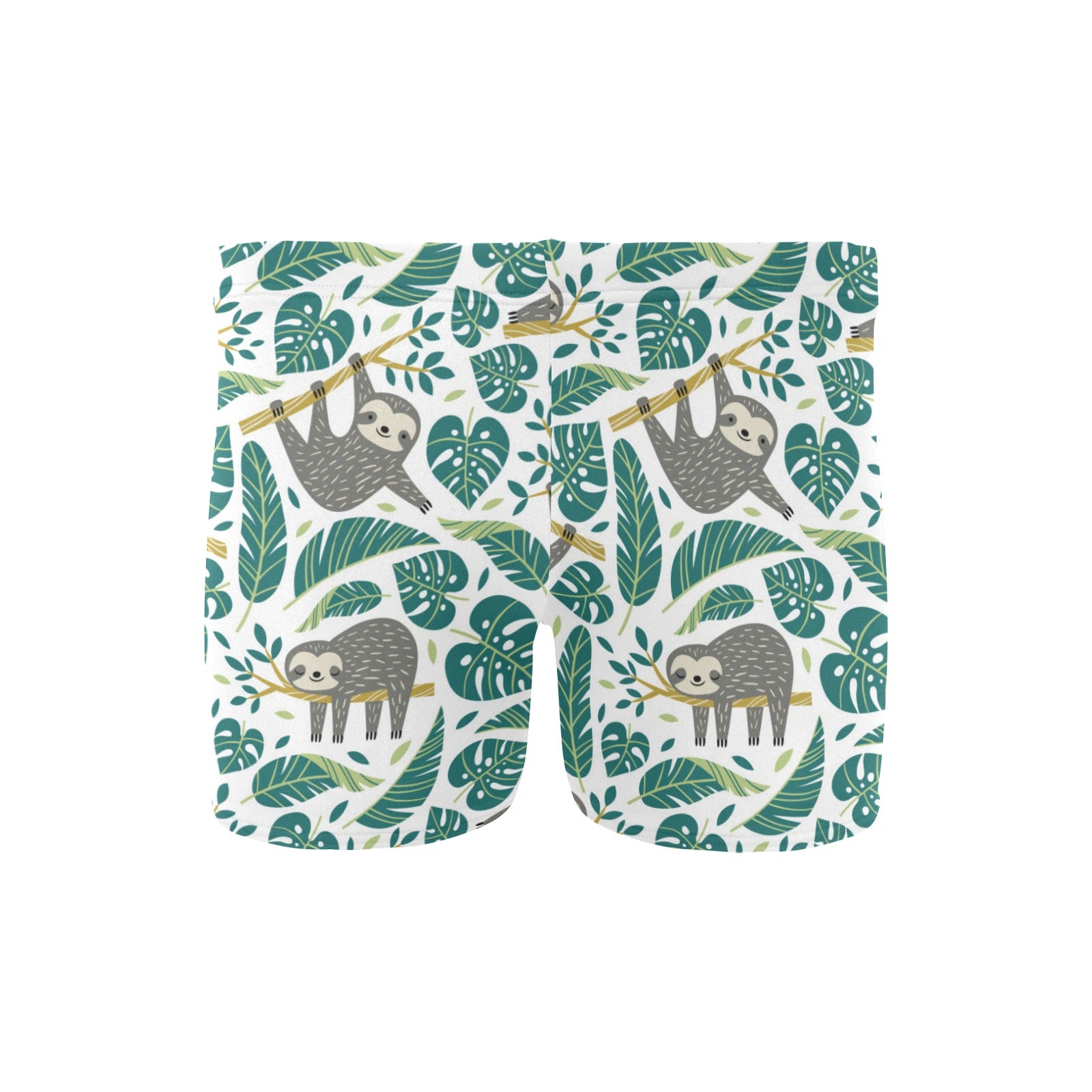 Cute sloths tropical palm leaves white background Men's Swimming Trunks