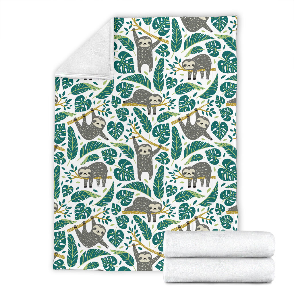 Cute sloths tropical palm leaves white background Premium Blanket is a uniqued design and limited item. It made to order, hand printed, and sewn with love in our factory.