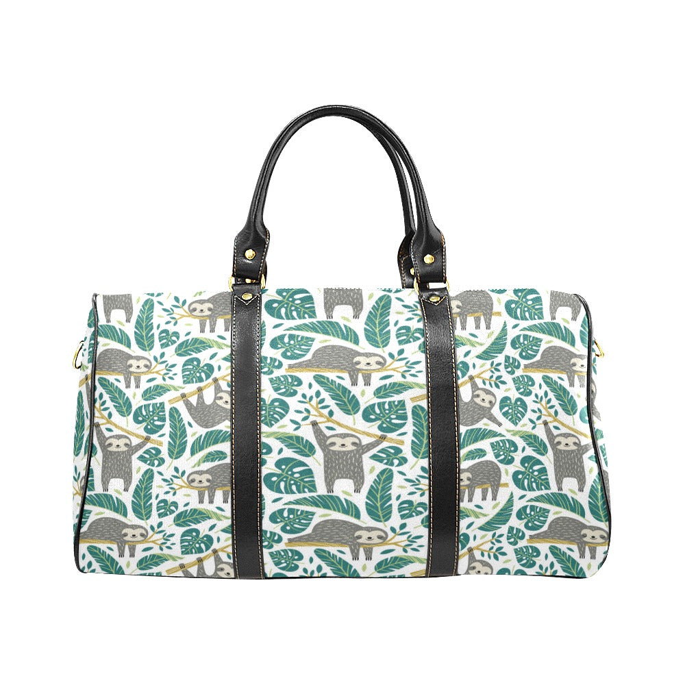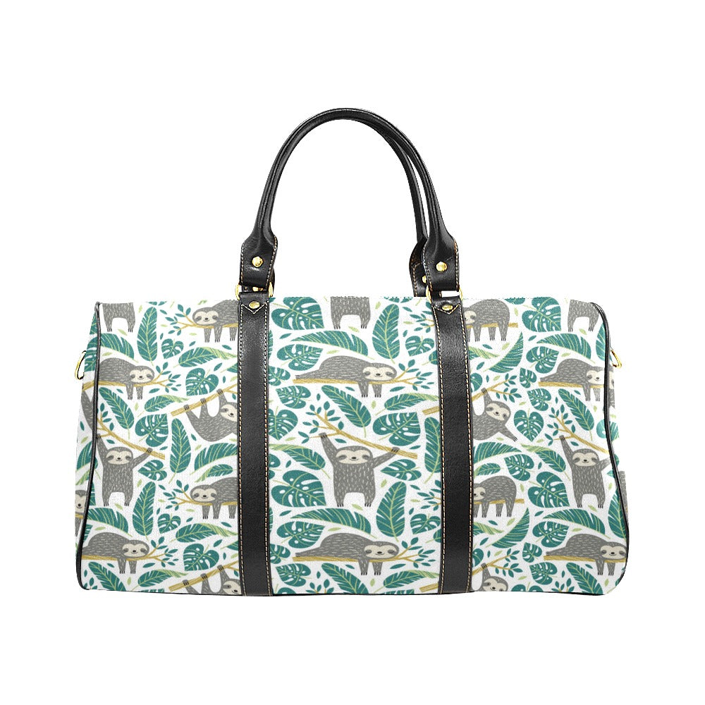 Cute sloths tropical palm leaves white background Travel Bag