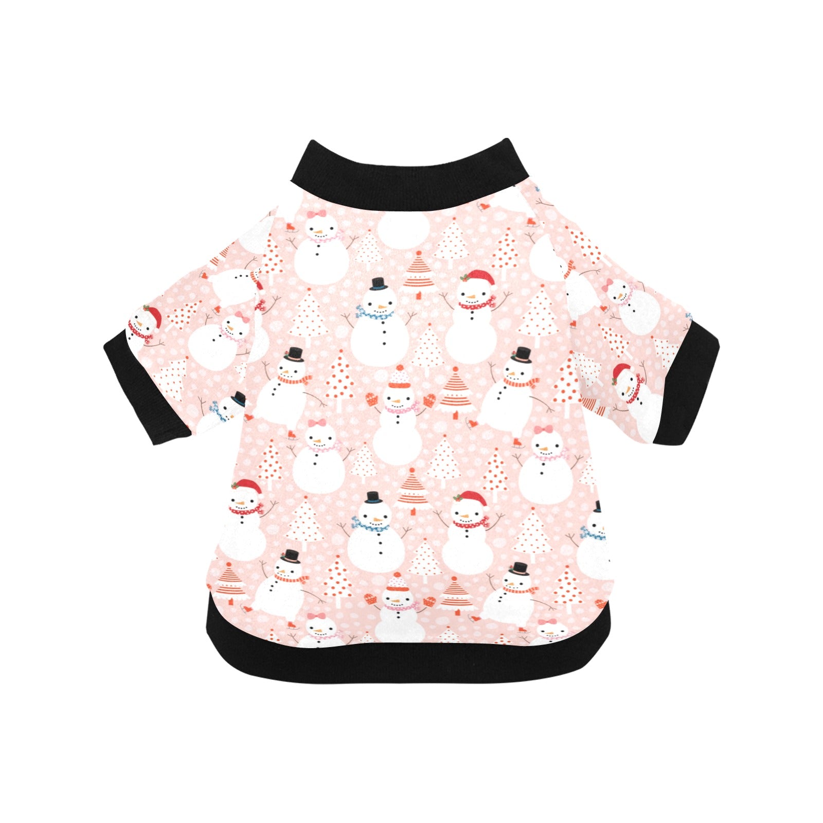 Cute snowman christmas tree snowpink background All Over Print Pet Dog Round Neck Fuzzy Shirt