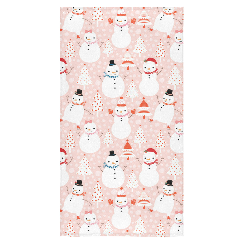 Cute snowman christmas tree snowpink background Bath Towel 30"x56" is a uniqued design and limited item. It made to order, hand printed, and sewn with love in our factory.