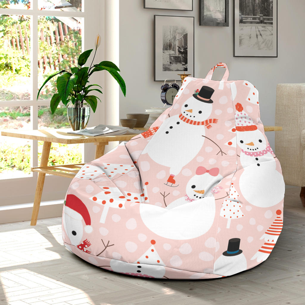 Cute Snowman Christmas Tree Snowpink Background Bean Bag Cover