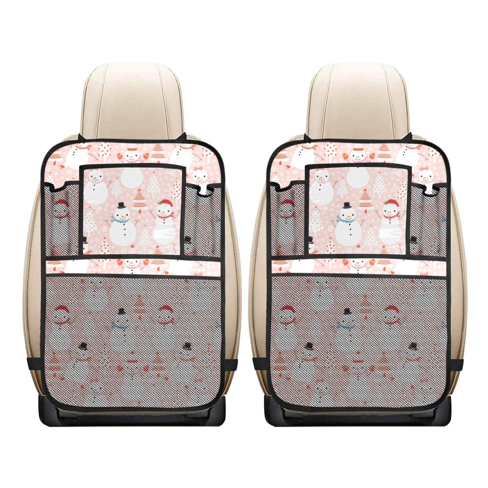 Cute snowman christmas tree snowpink background Car Seat Back Organizer