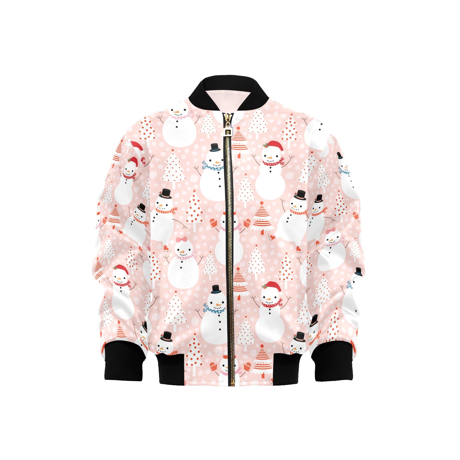 Cute snowman christmas tree snowpink background Kids' Boys' Girls' Bomber Jacket