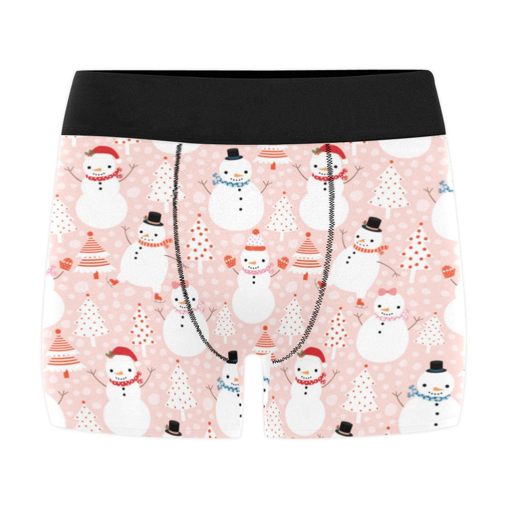 Cute snowman christmas tree snowpink background Men's All Over Print Boxer Briefs Men's Underwear