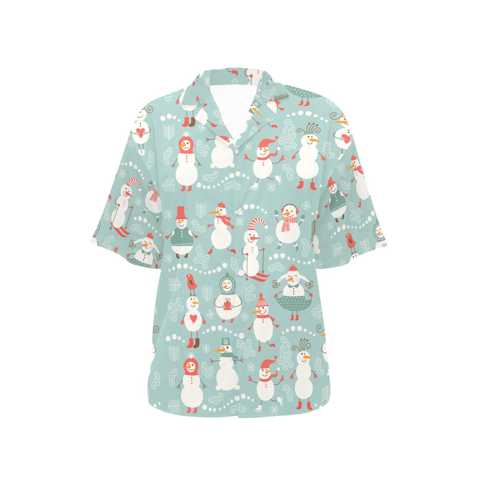 Cute snowman pattern Women's All Over Print Hawaiian Shirt