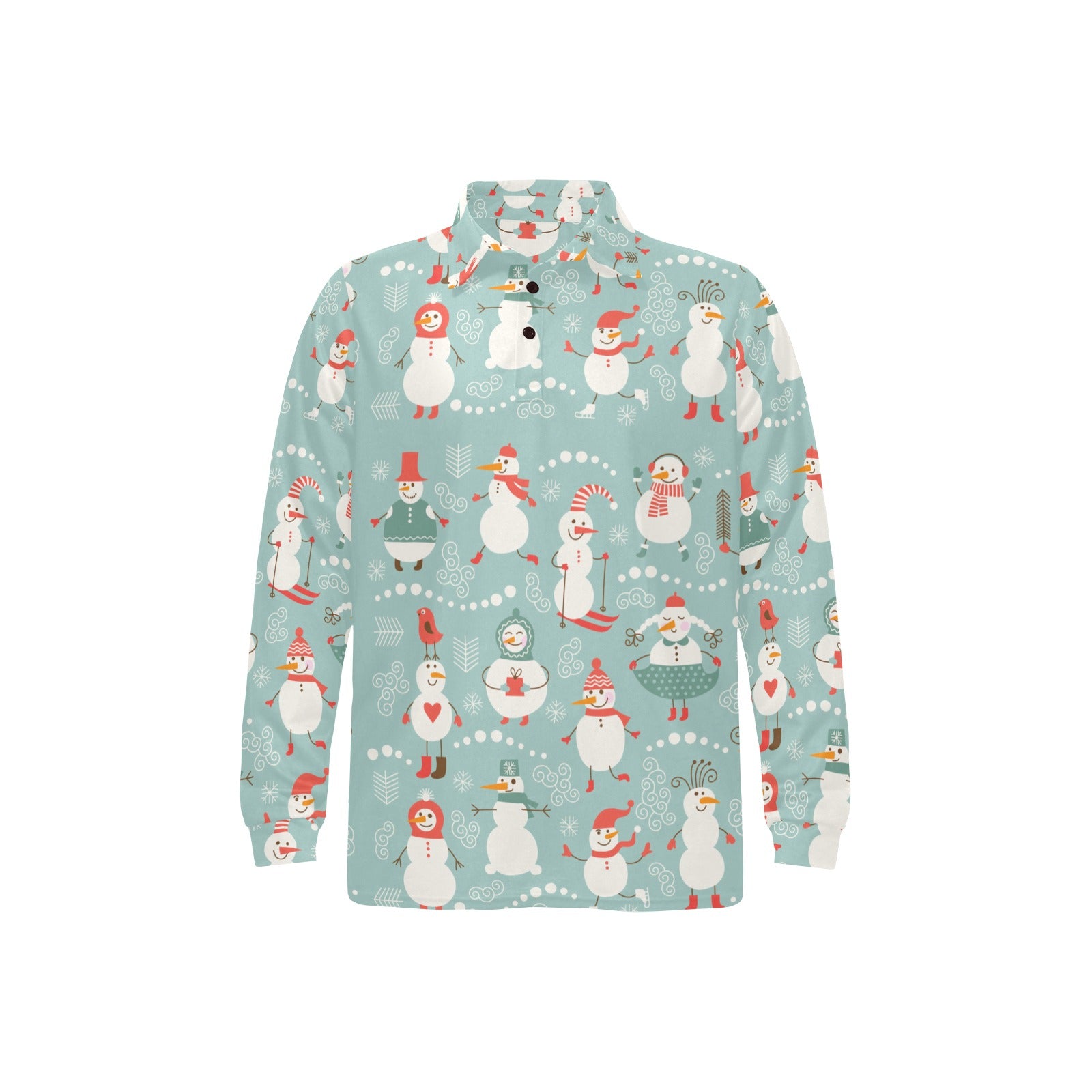 Cute snowman pattern Men's Long Sleeve Polo Shirt