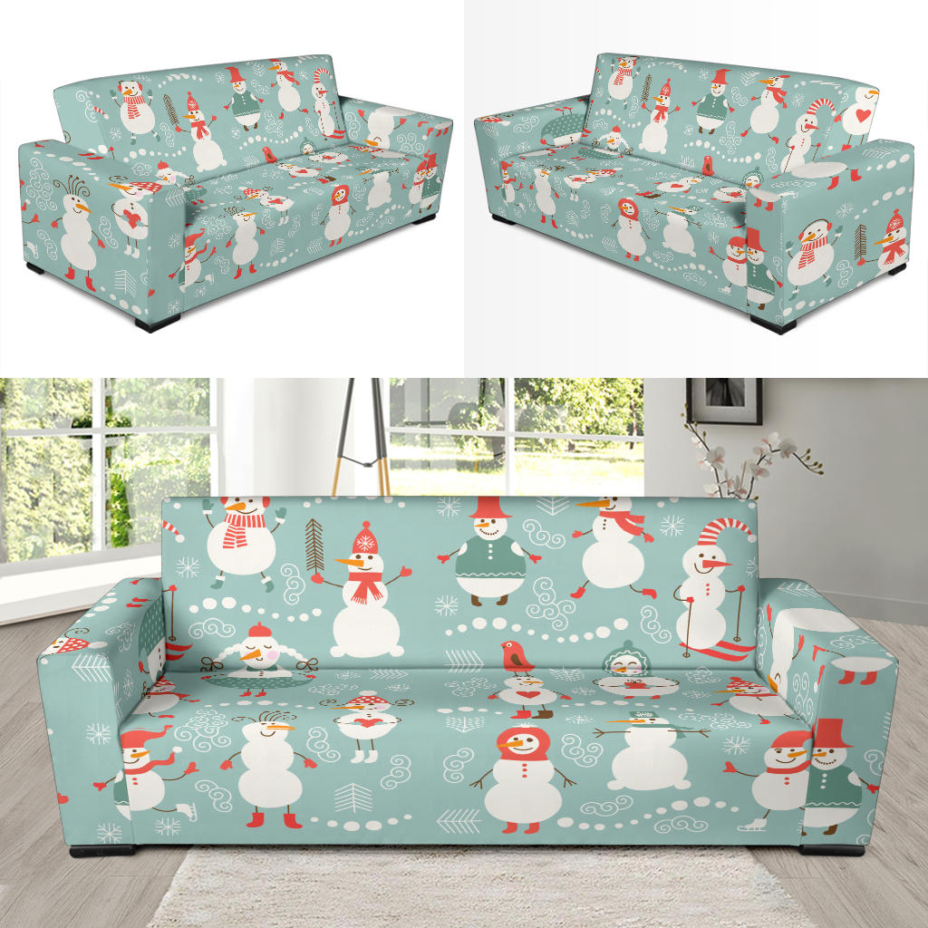 Cute snowman pattern Sofa Slipcover is a uniqued design and limited item. It made to order, hand printed, and sewn with love in our factory.