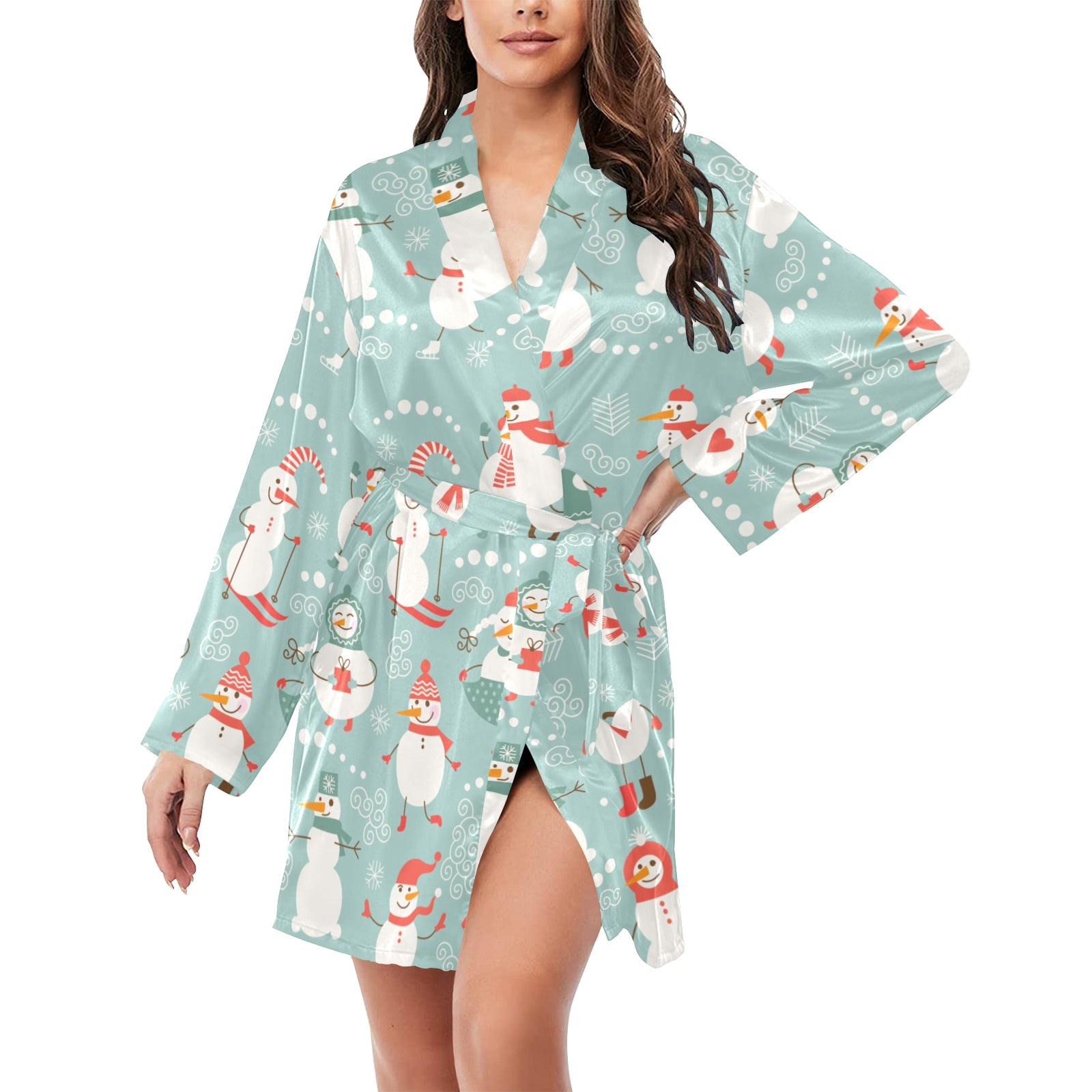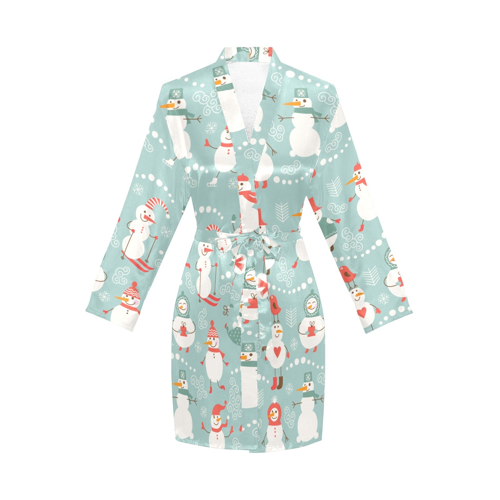Cute snowman pattern Women's Long Sleeve Belted Night Robe