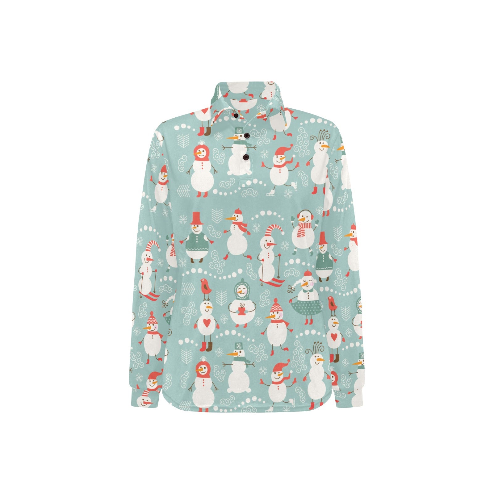 Cute snowman pattern Women's Long Sleeve Polo Shirt