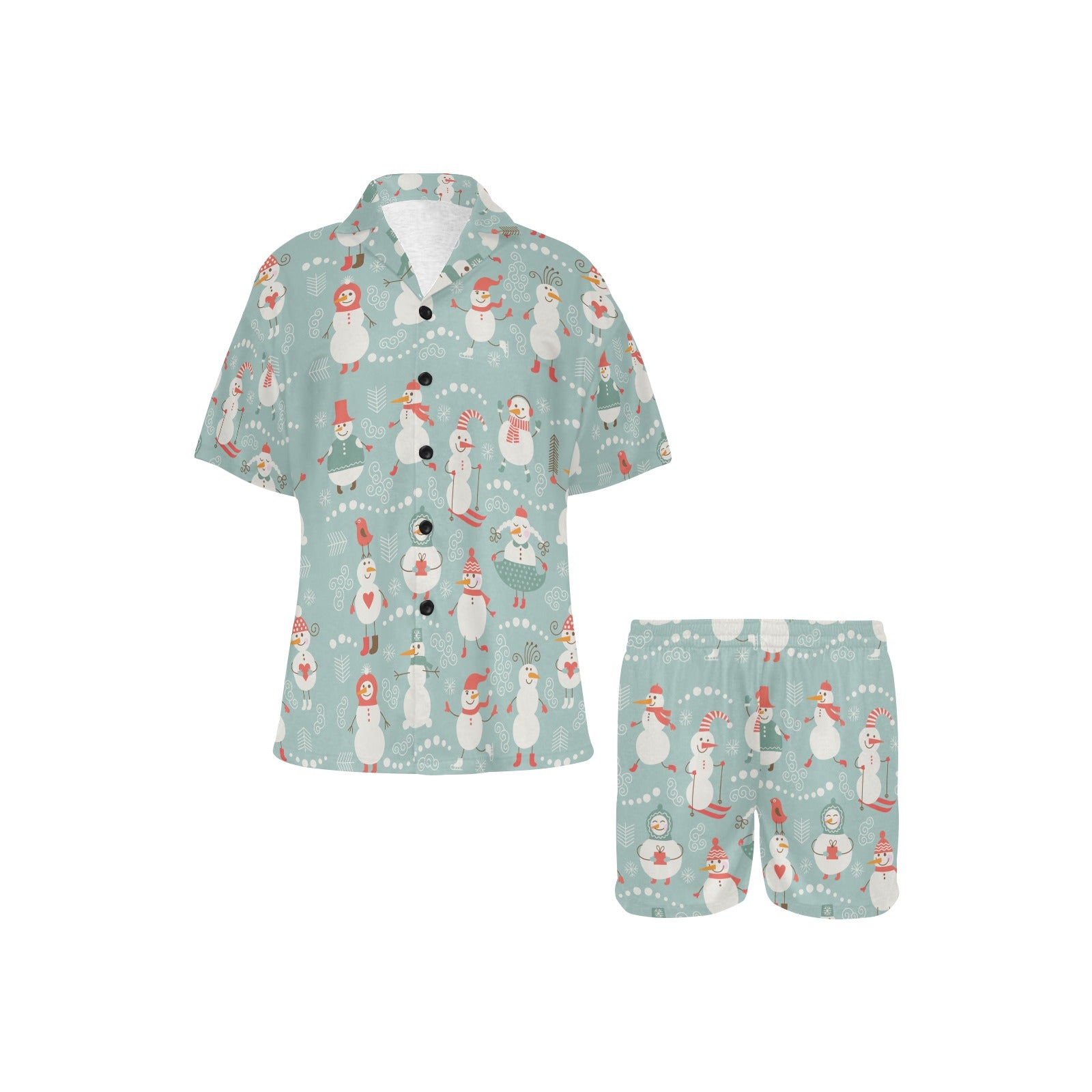 Cute snowman pattern Women's V-Neck Short Pajama Set