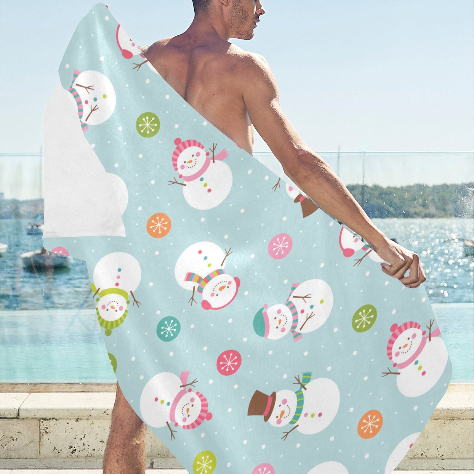 Cute snowman snowflake pattern Beach Towel