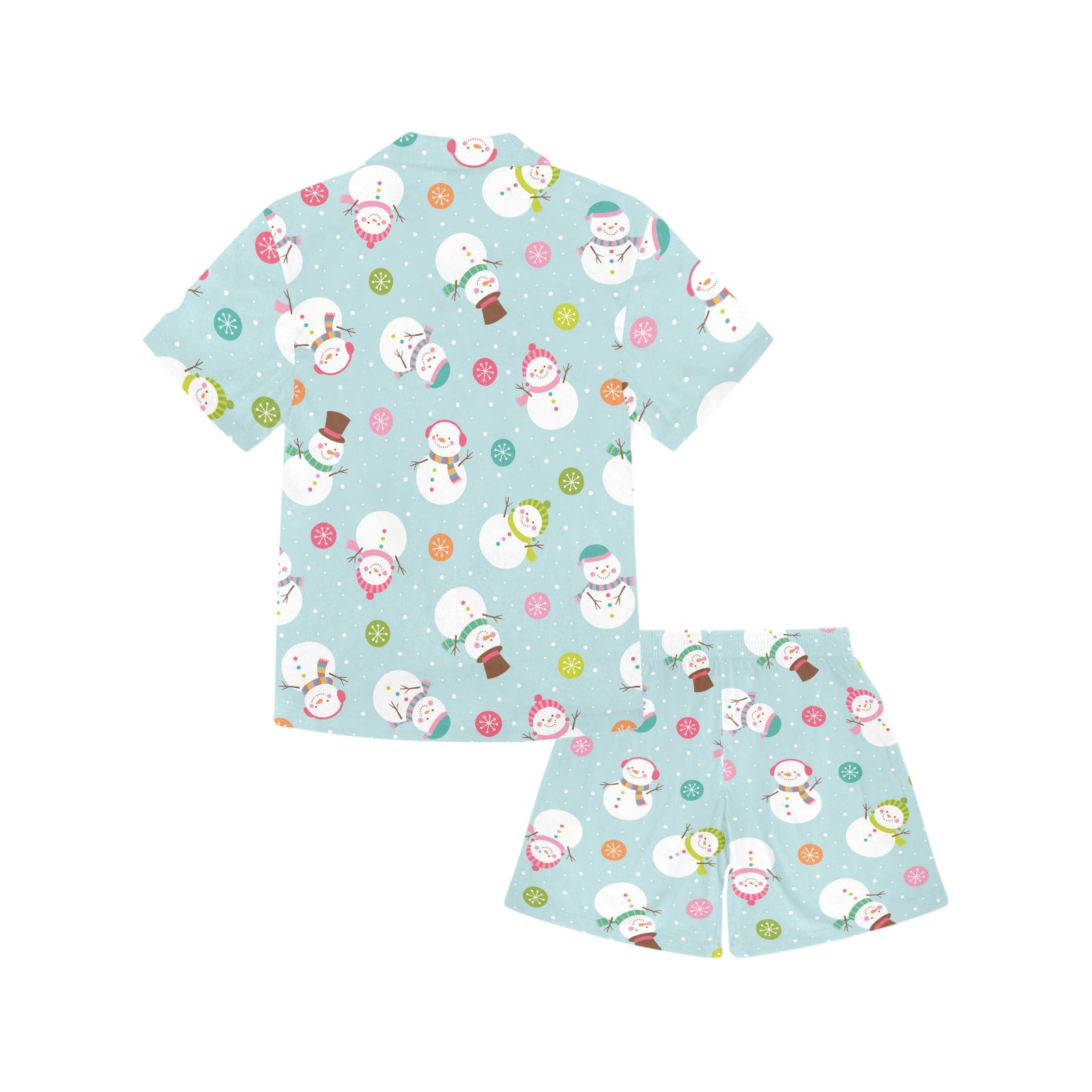 Cute snowman snowflake pattern Kids' Boys' Girls' V-Neck Short Pajama Set