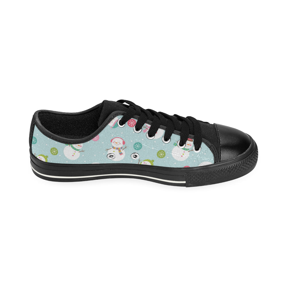 Cute snowman snowflake pattern Men's Low Top Canvas Shoes Black