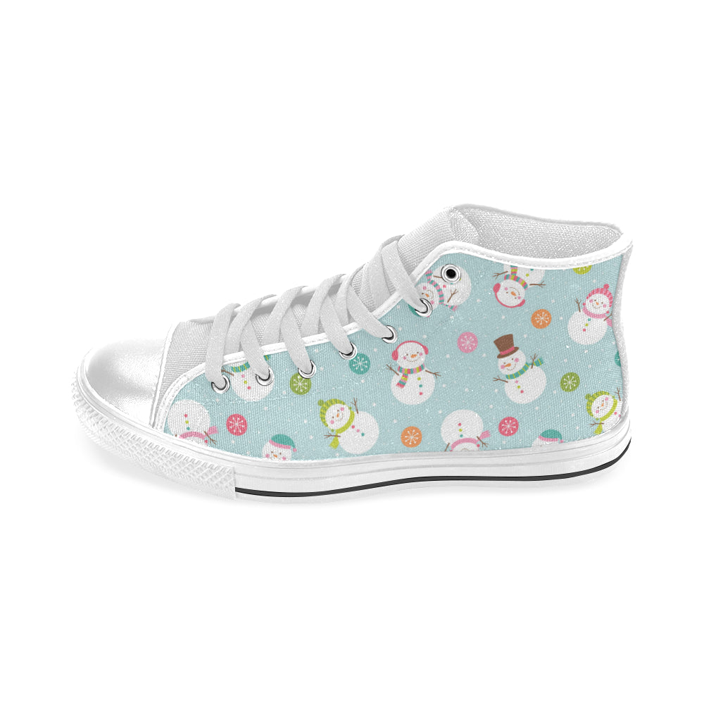 Cute snowman snowflake pattern Men's High Top Canvas Shoes White