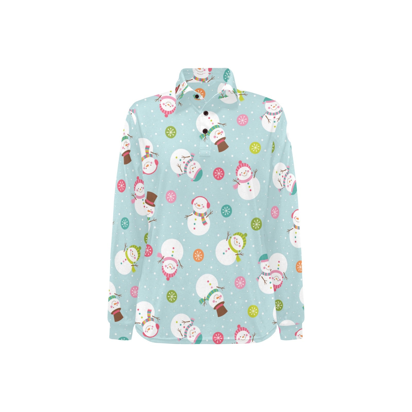 Cute snowman snowflake pattern Women's Long Sleeve Polo Shirt
