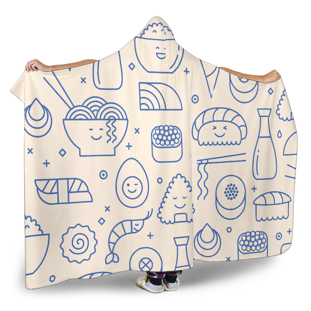 Cute sushi icon pattern Hooded Blanket are custom-made-to-order and handcrafted to the highest quality standards.