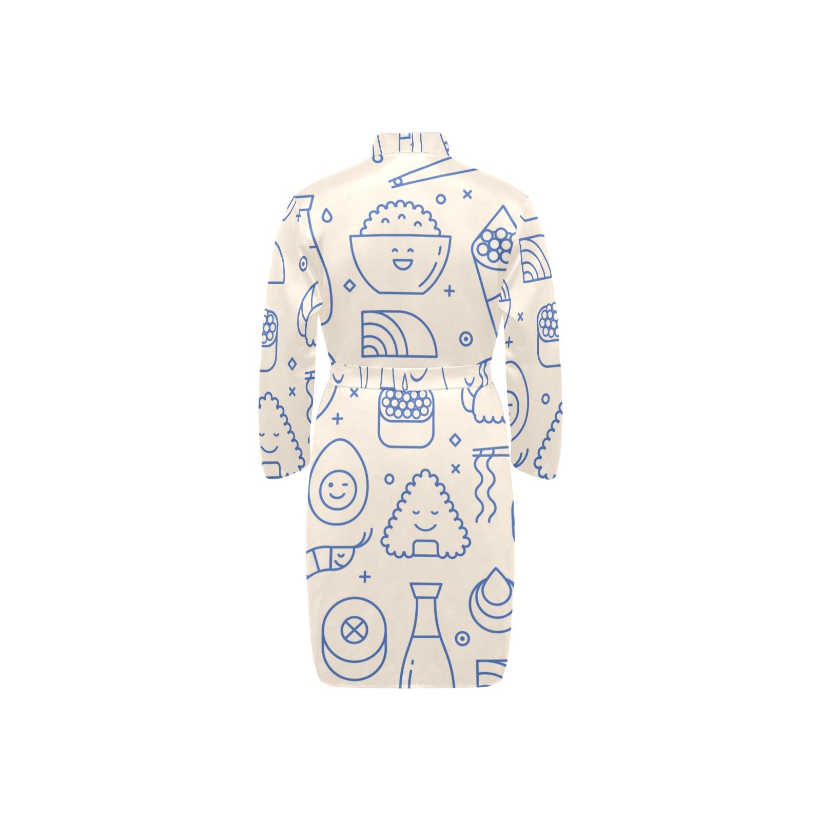 Cute sushi icon pattern Men's Long Sleeve Belted Night Robe