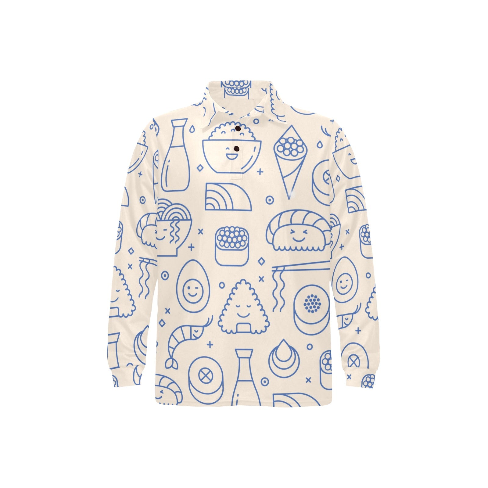 Cute sushi icon pattern Men's Long Sleeve Polo Shirt