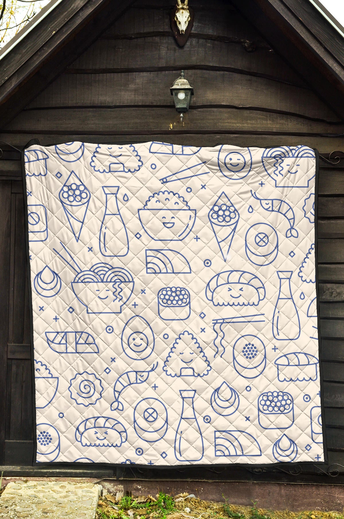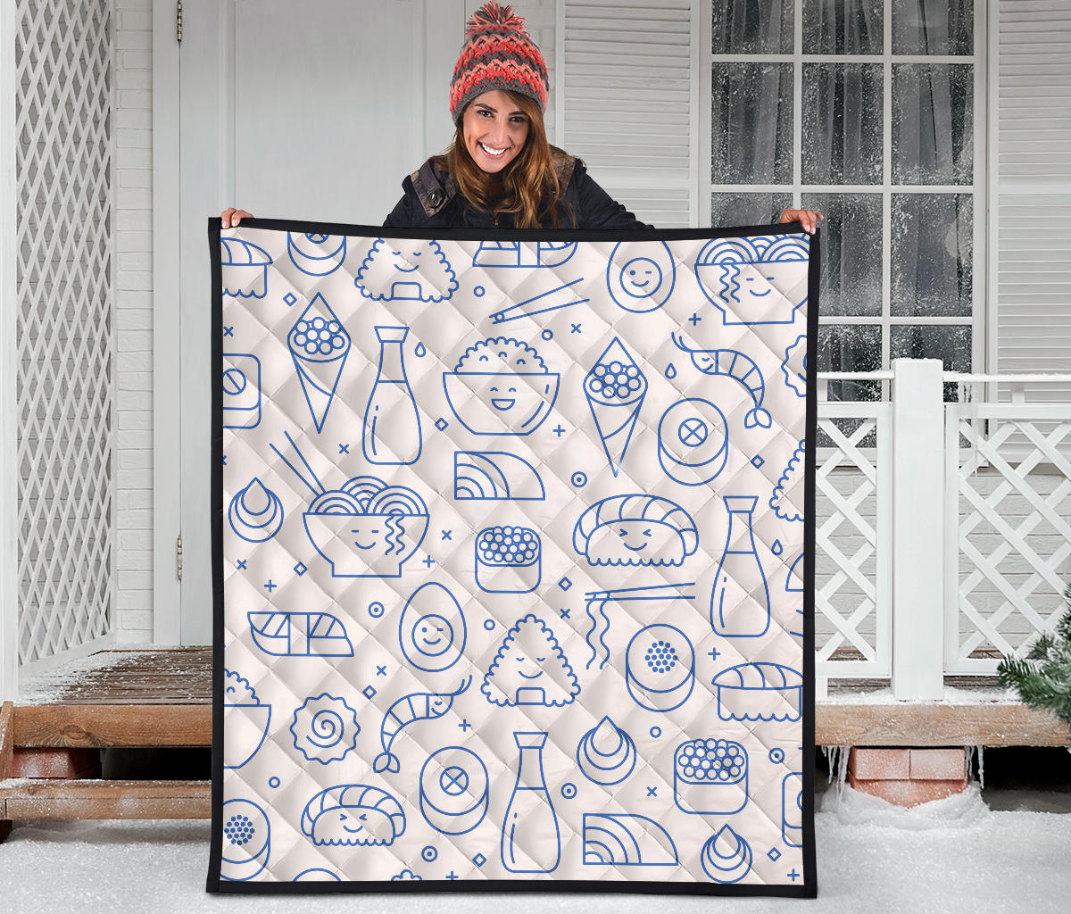 Cute Sushi Icon Pattern Premium Quilt is a uniqued design and limited item. It made to order, hand printed, and sewn with love in our factory.