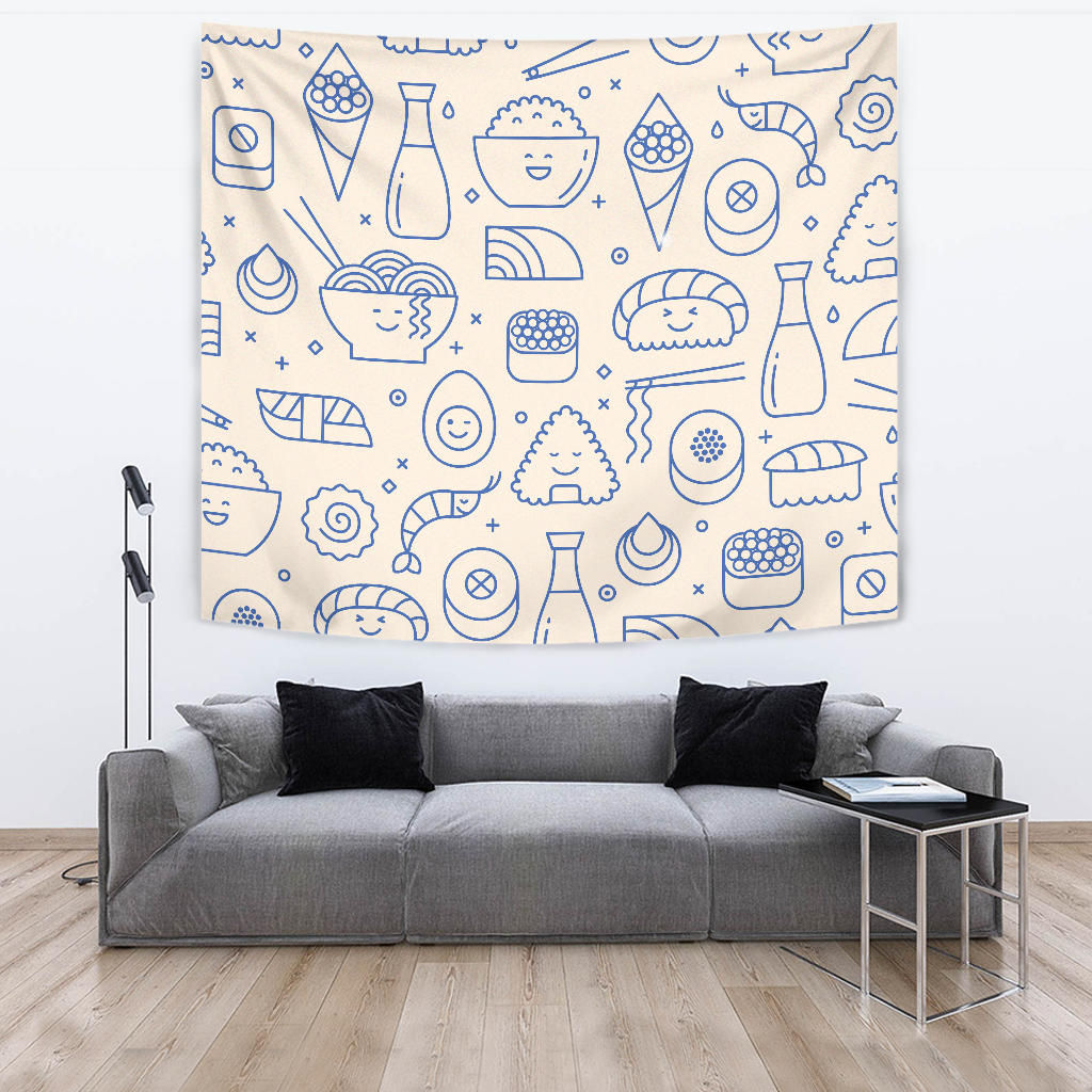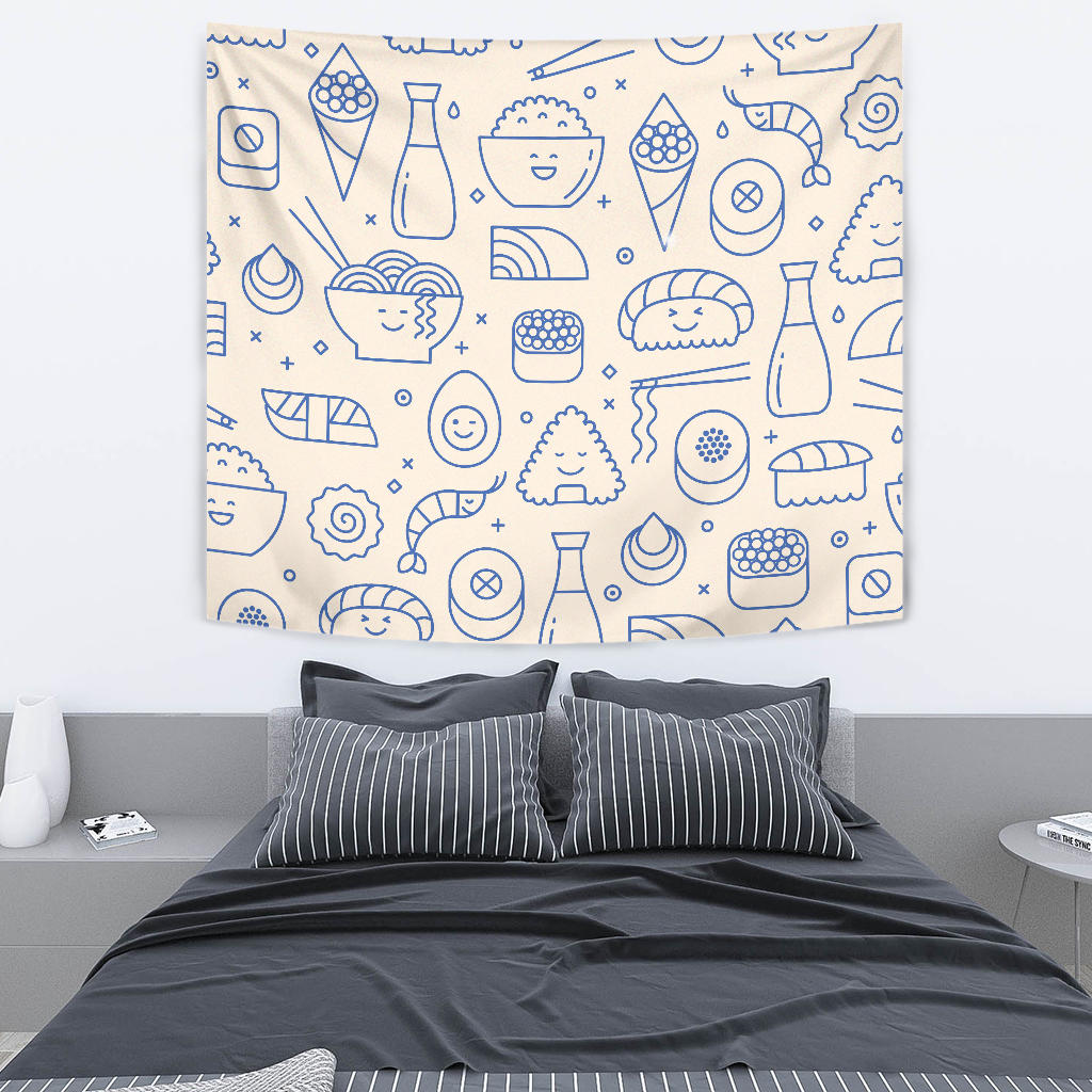 Cute sushi icon pattern Tapestry is a uniqued design and limited item. It made to order, hand printed, and sewn with love in our factory.