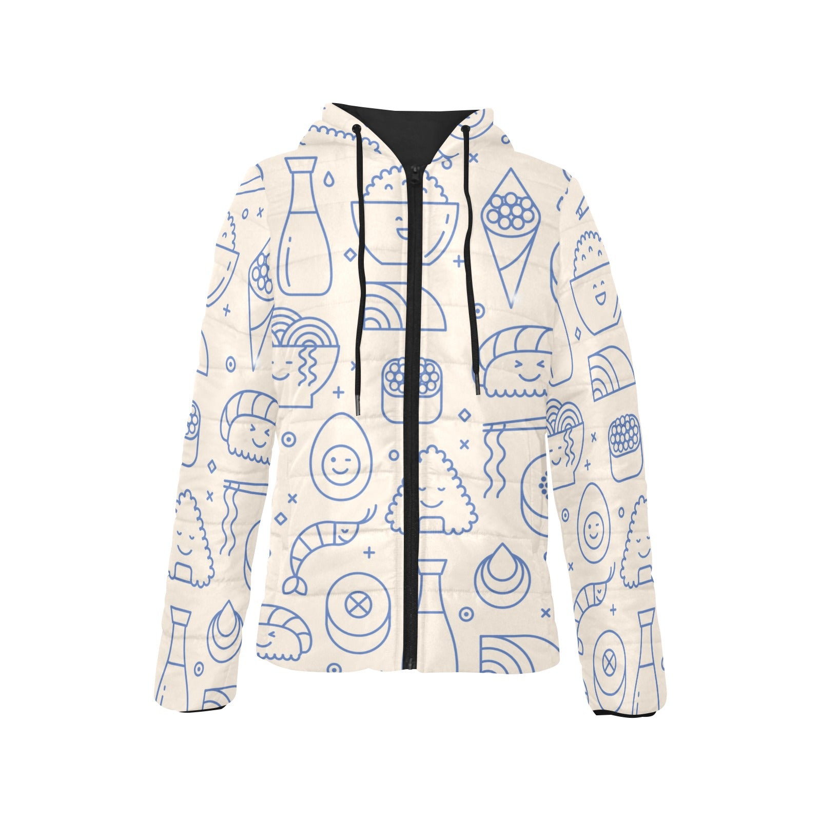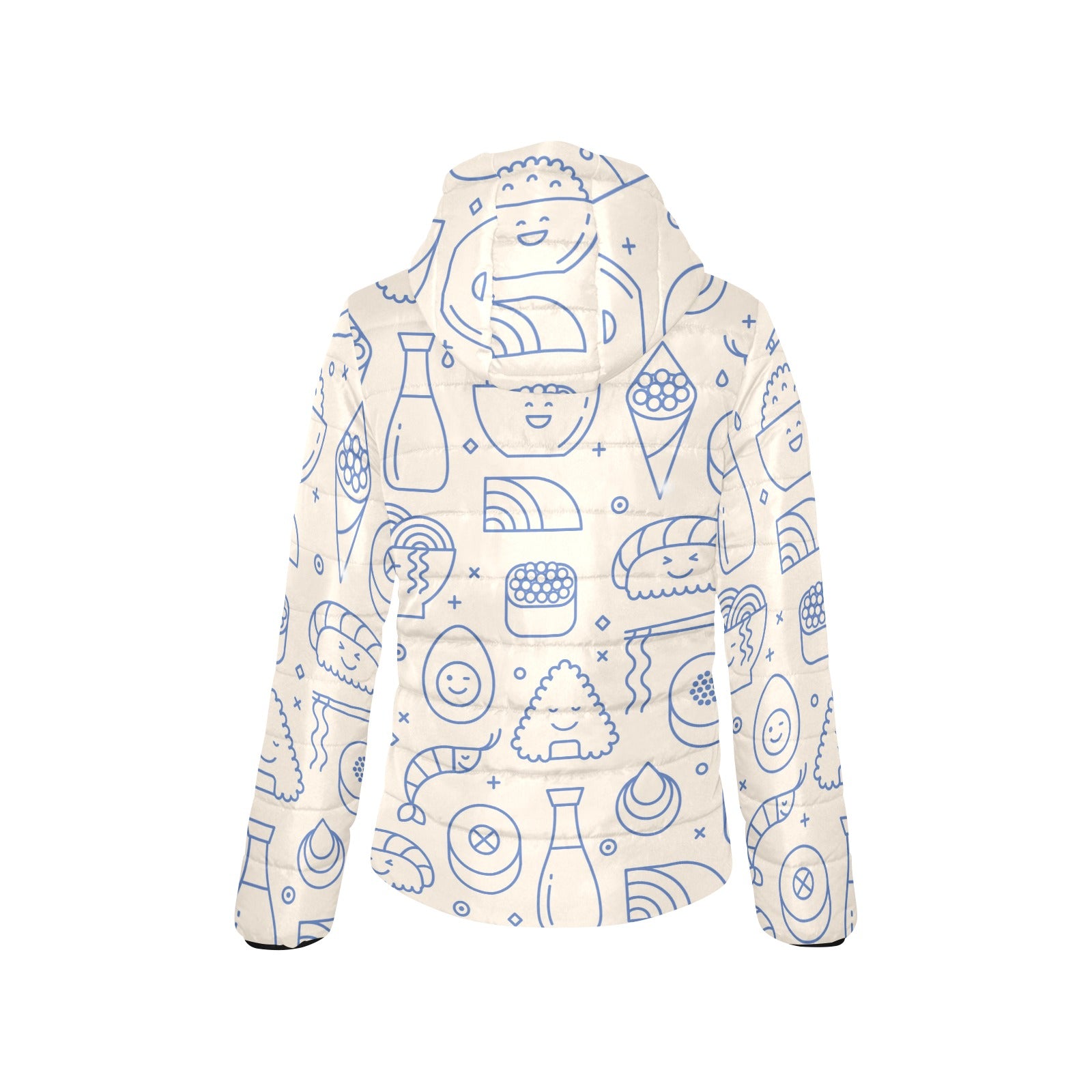 Cute sushi icon pattern Women's Padded Hooded Jacket