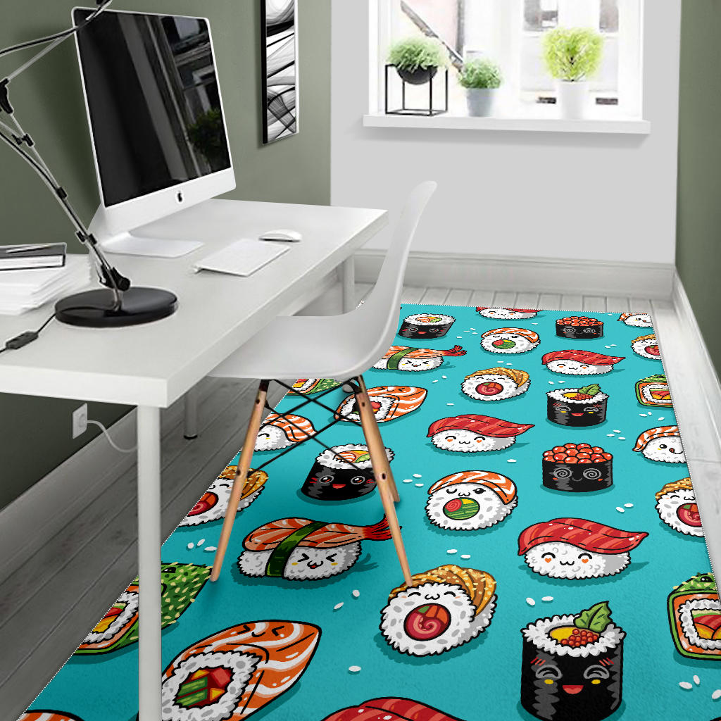 Cute sushi pattern Area Rug is a uniqued design and limited item. It made to order, hand printed, and sewn with love in our factory.