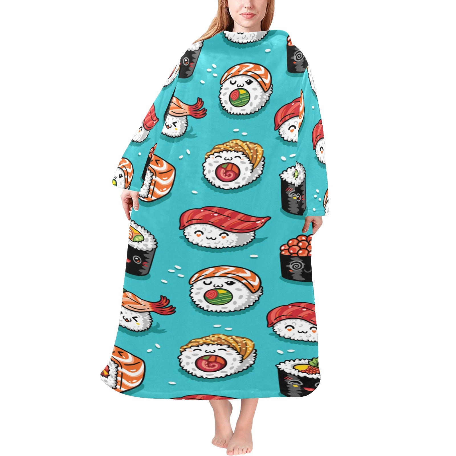 Cute sushi pattern Blanket Robe with Sleeves