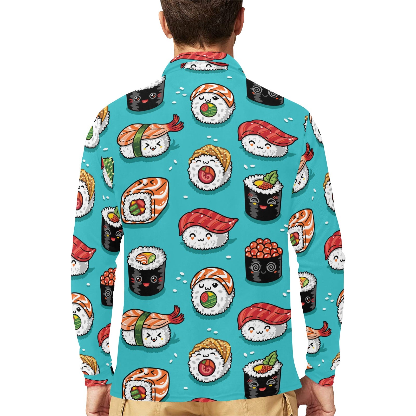 Cute sushi pattern Men's Long Sleeve Polo Shirt