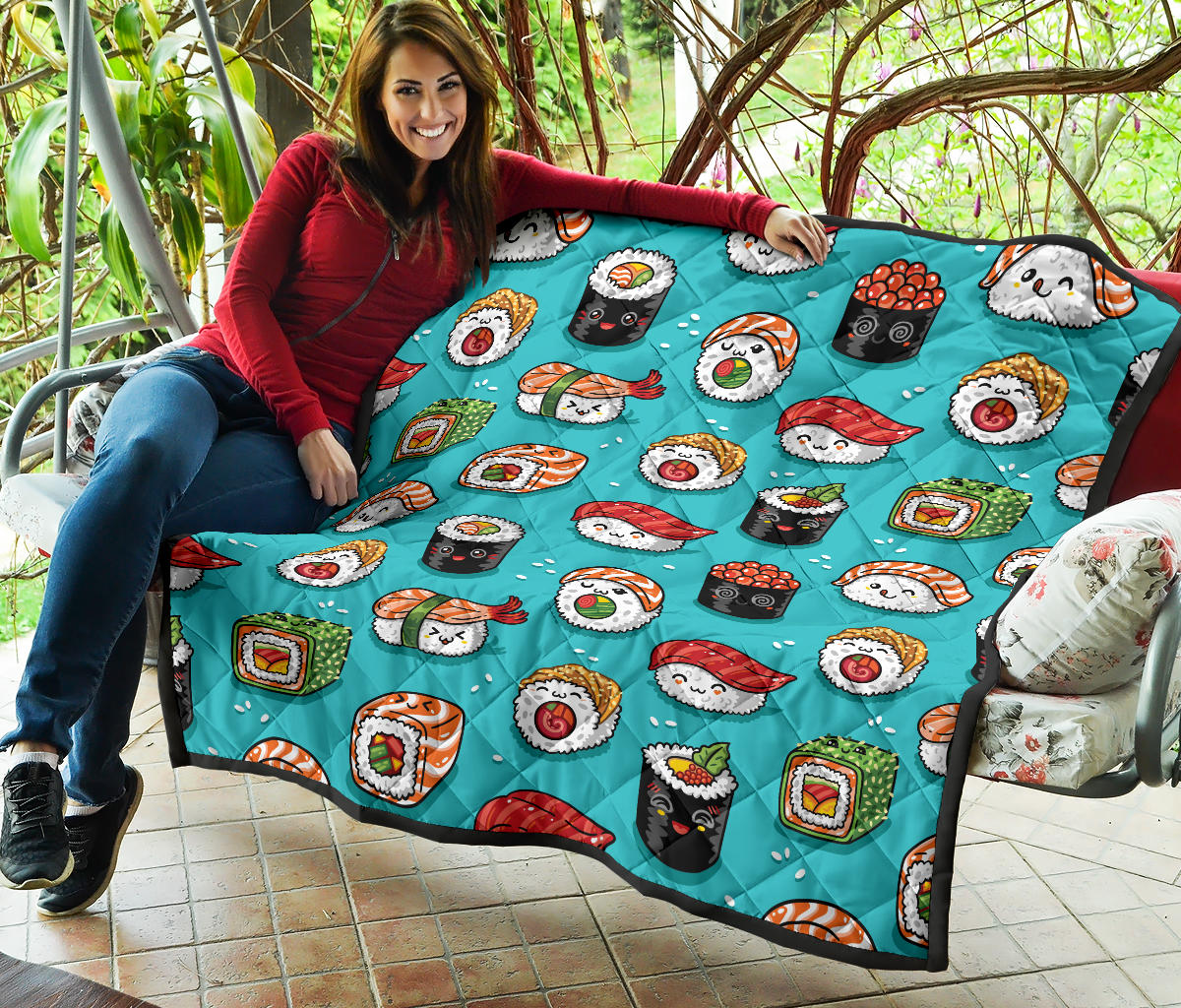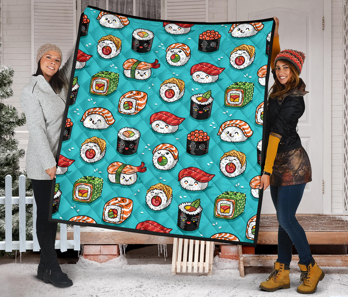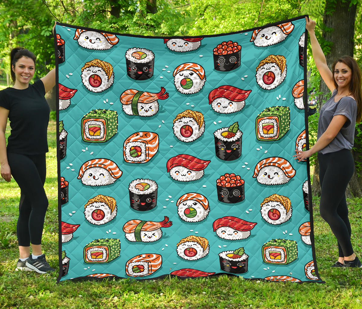 Cute Sushi Pattern Premium Quilt is a uniqued design and limited item. It made to order, hand printed, and sewn with love in our factory.