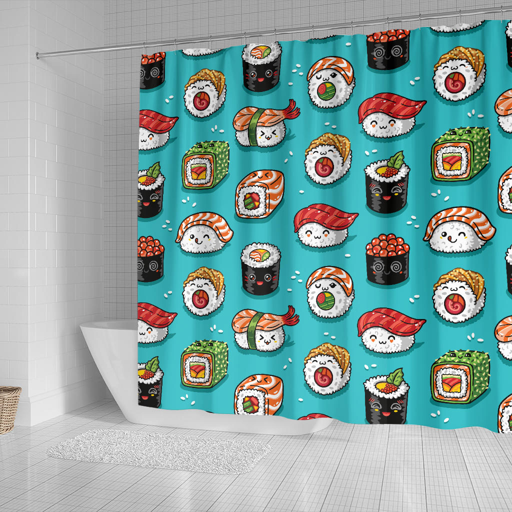 Cute sushi pattern Shower Curtain is a uniqued design and limited item. It made to order, hand printed, and sewn with love in our factory.