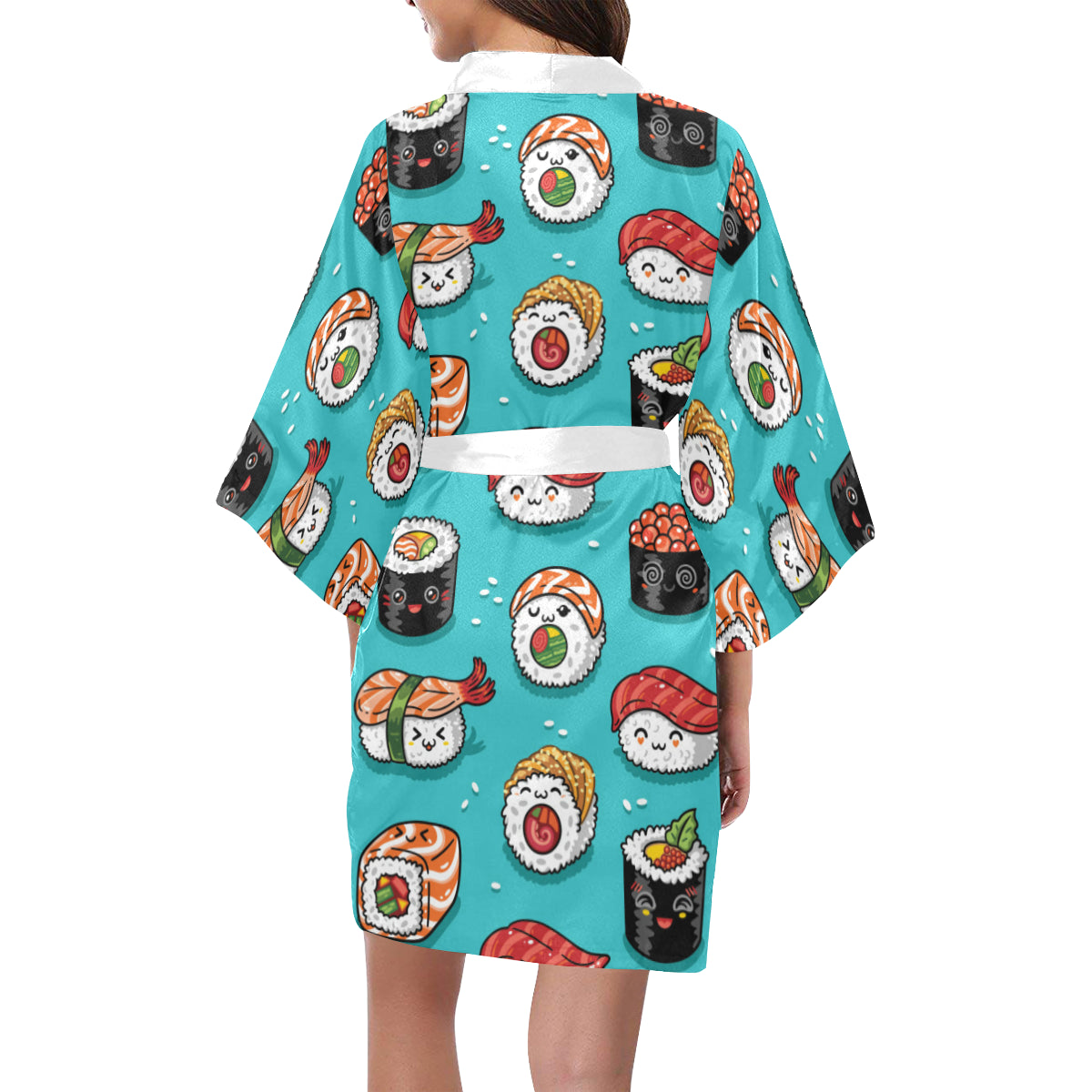 Cute sushi pattern Women's Short Kimono Robe is a uniqued design and limited item. It made to order, hand printed, and sewn with love in our factory.