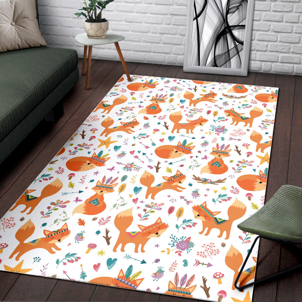 cute tribal fox pattern Area Rug is a uniqued design and limited item. It made to order, hand printed, and sewn with love in our factory.