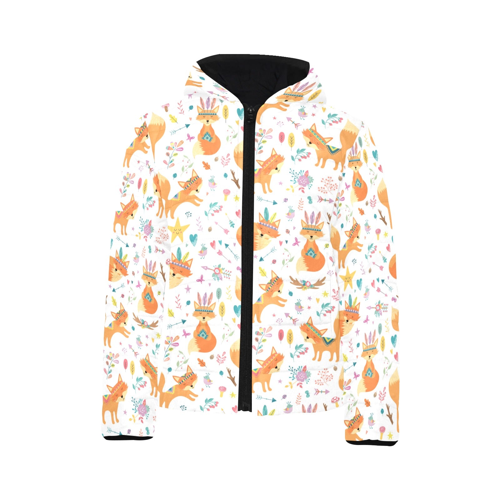 cute tribal fox pattern Kids' Boys' Girls' Padded Hooded Jacket